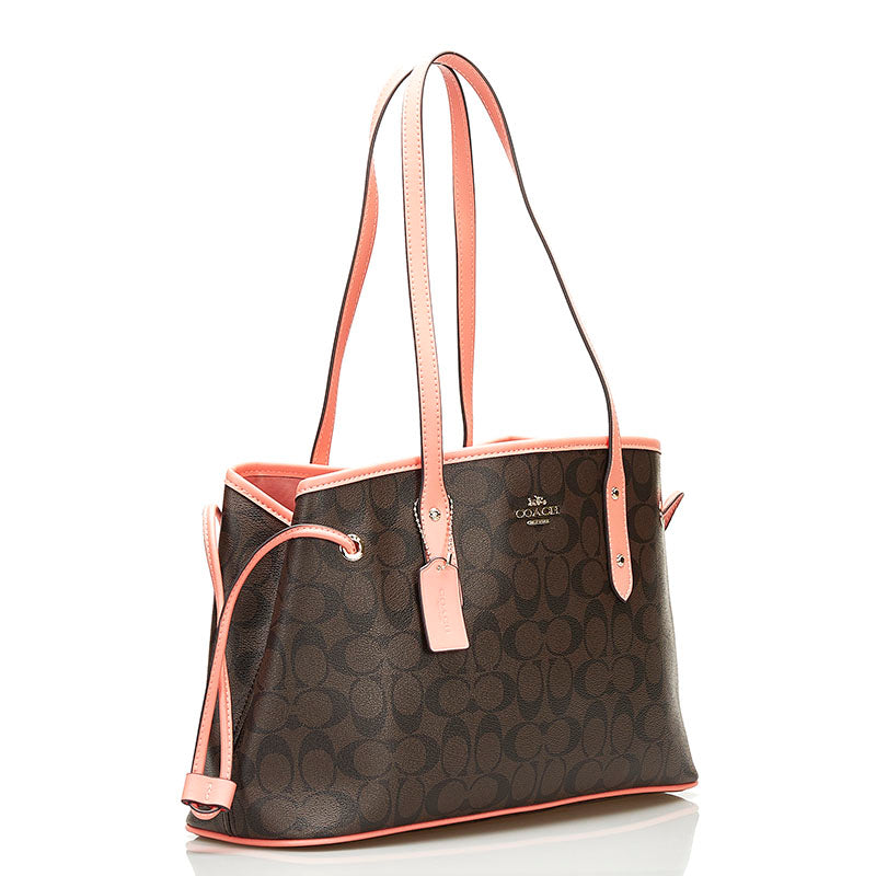 コーチ シグネチャー トートバッグ F57842 ブラウン ピンク PVC レザー レディース COACH 【中古】