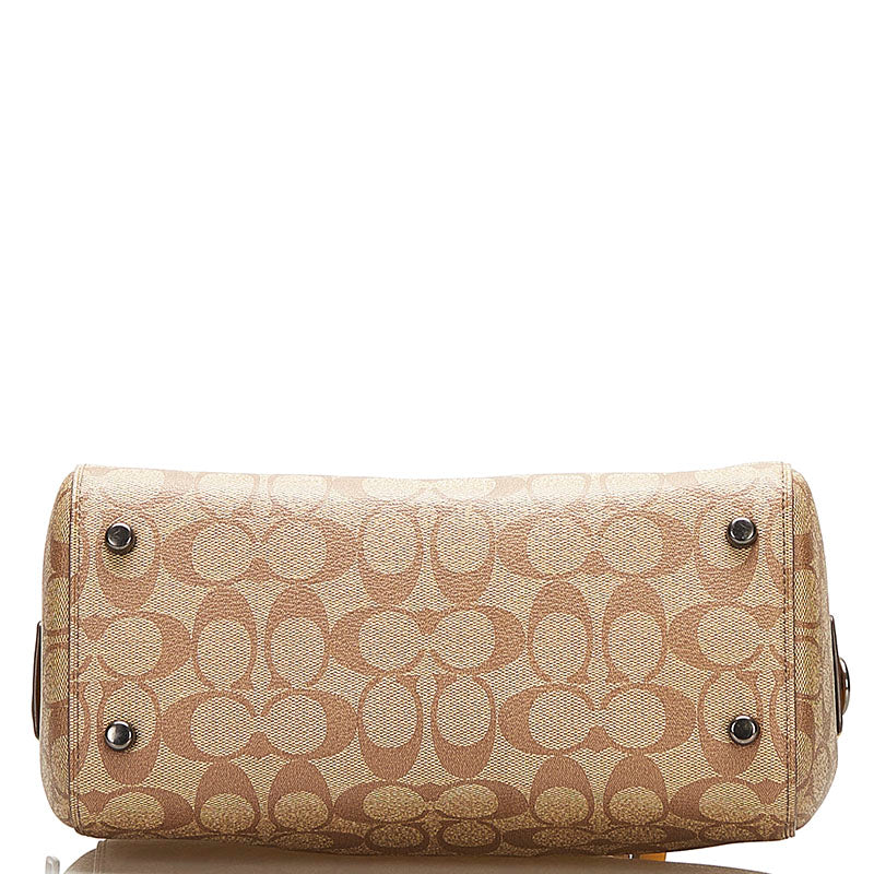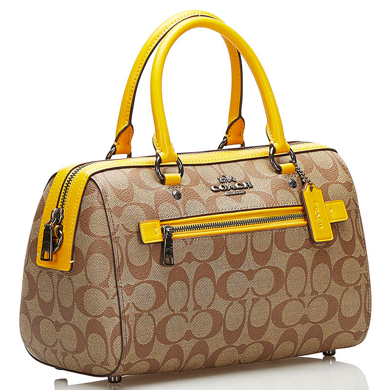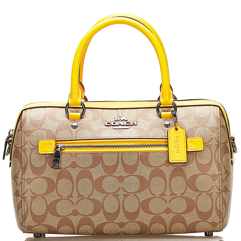 コーチ シグネチャー ハンドバッグ ショルダーバッグ 2WAY ベージュ イエロー キャンバス レザー レディース COACH 【中古】