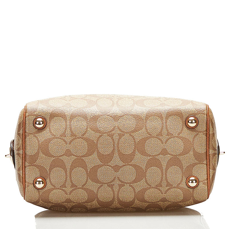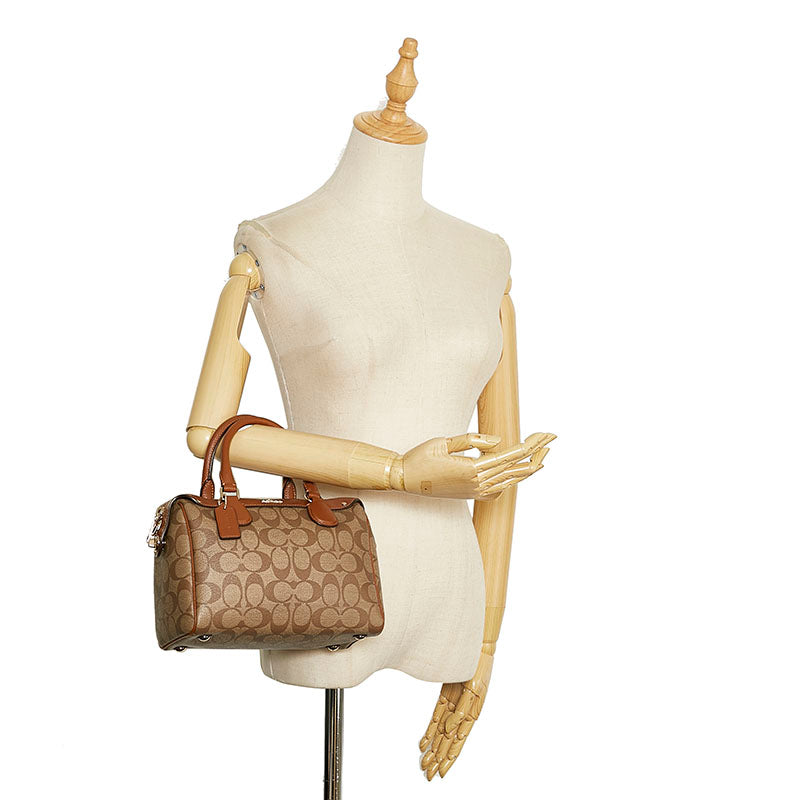 コーチ シグネチャー ハンドバッグ ミニボストンバッグ F36702 ブラウン PVC レザー レディース COACH 【中古】