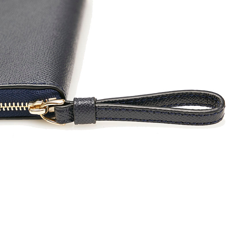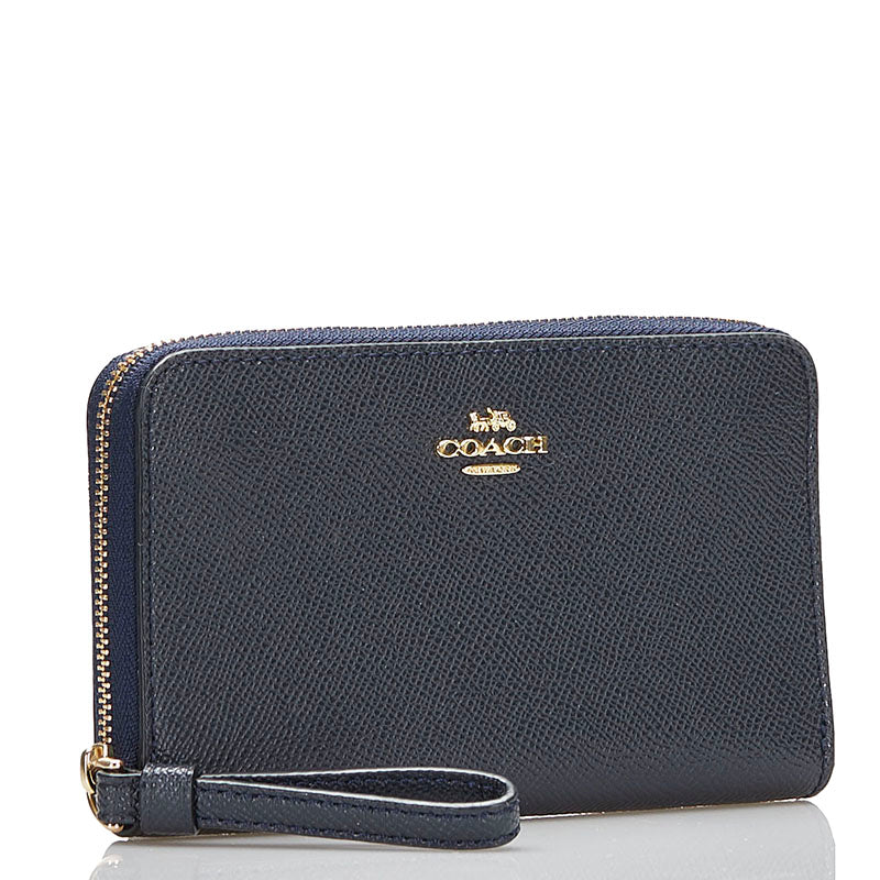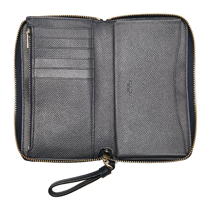 コーチ ラウンドファスナー 二つ折り財布 F58053 ネイビー レザー レディース COACH 【中古】