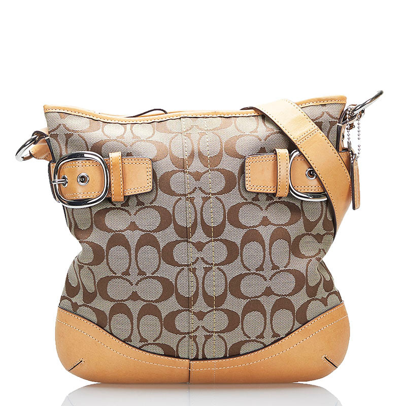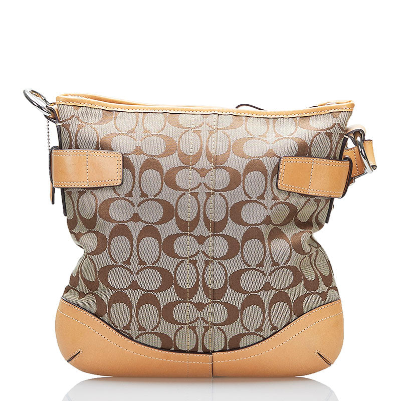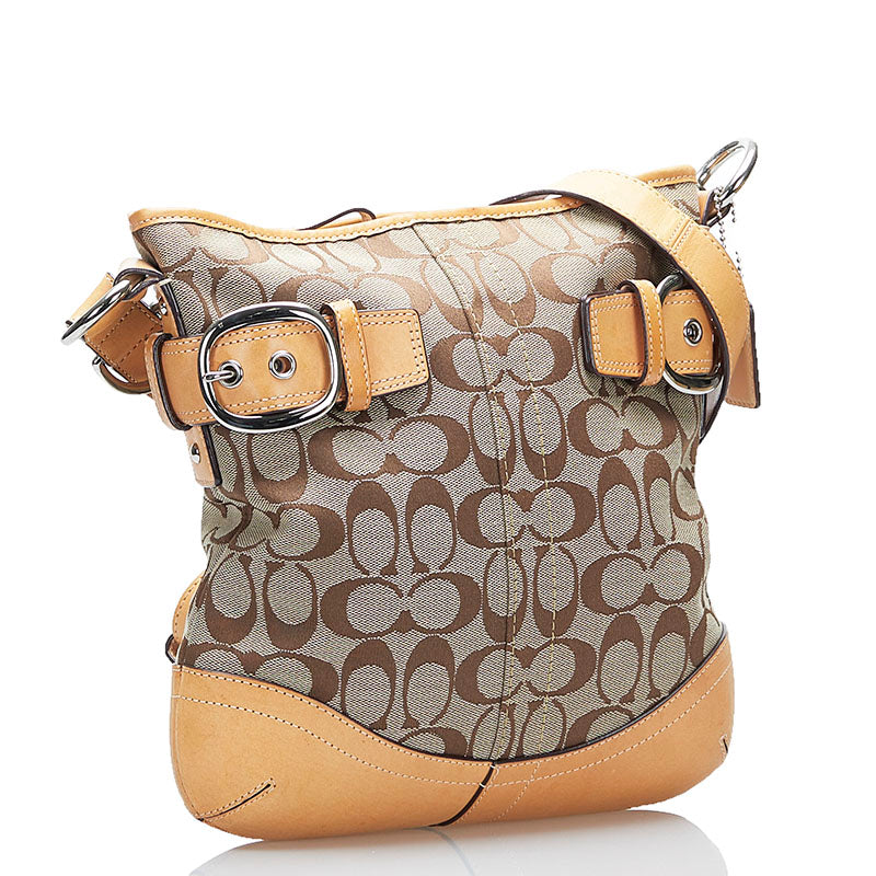 コーチ シグネチャー 斜め掛け ショルダーバッグ F19682 ベージュ ブラウン キャンバス レザー レディース COACH 【中古】