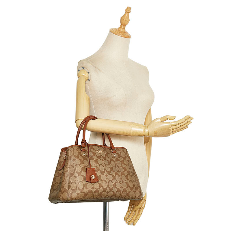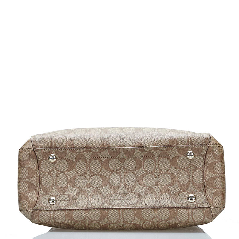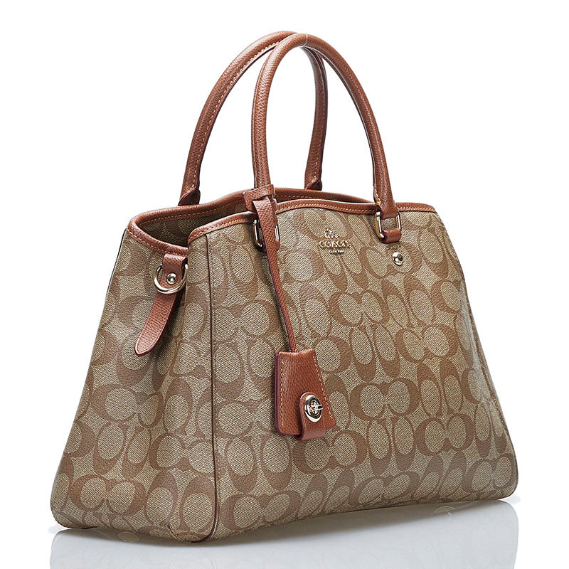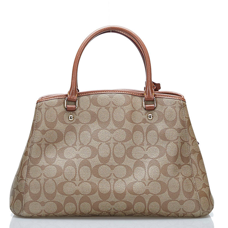 コーチ シグネチャー スモールマーゴット キャリーオール ハンドバッグ F34608 ブラウン PVC レザー レディース COACH 【中古】