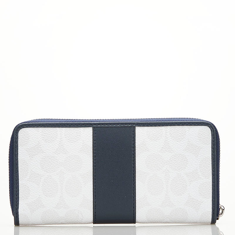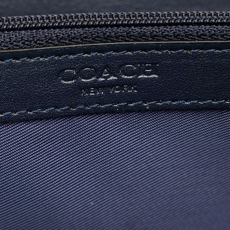 コーチ シグネチャー ラウンドファスナー 長財布 F54630 ホワイト ネイビー PVC レザー レディース COACH 【中古】