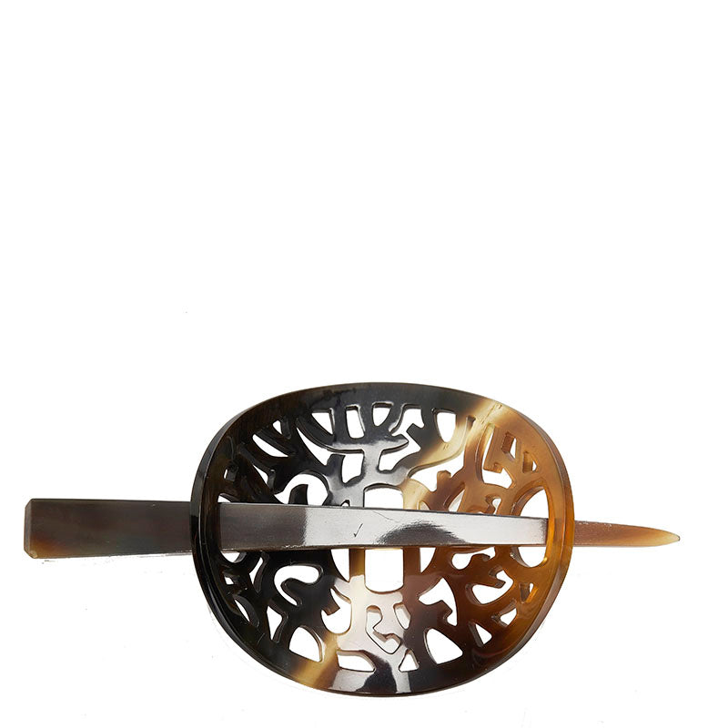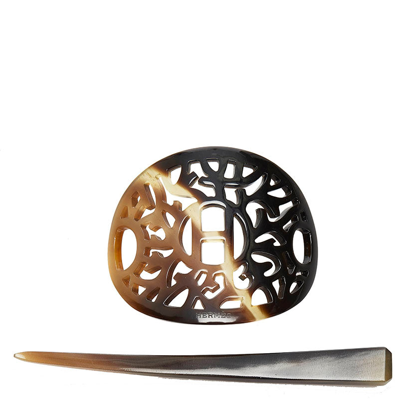 エルメス マジェステ バレッタ かんざし ヘアアクセサリー ベージュ ブラウン バッファローホーン レディース HERMES 【中古】