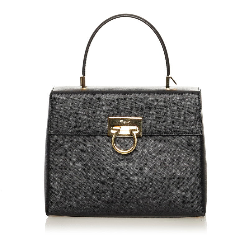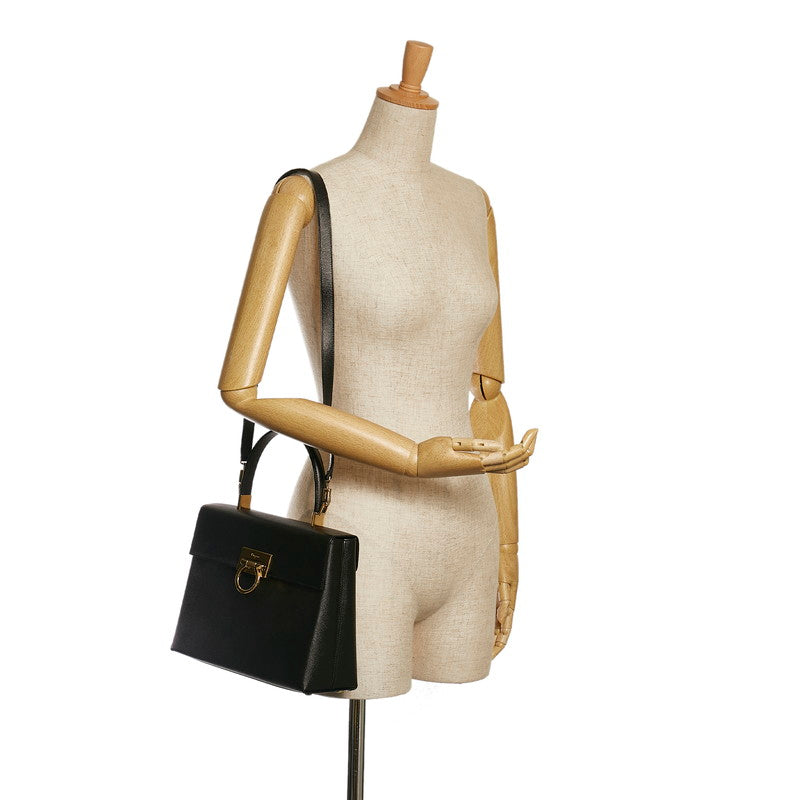 サルヴァトーレフェラガモ ガンチーニ ハンドバッグ ショルダーバッグ 2WAY AF-21 0290 ブラック レザー レディース Salvatore Ferragamo 【中古】