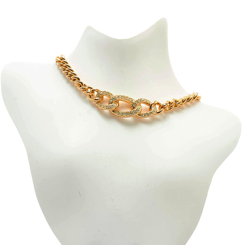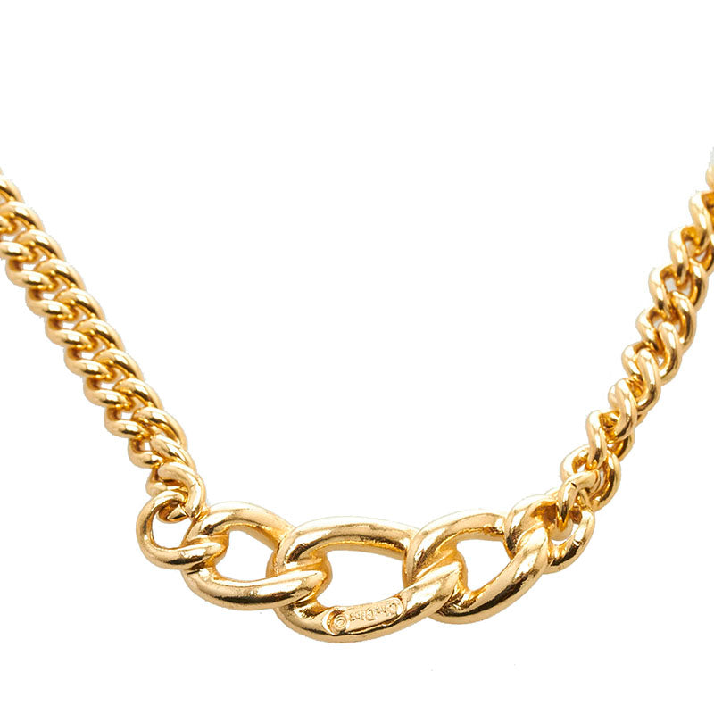 クリスチャンディオール ラインストーン チェーンネックレス ゴールド メッキ レディース Christian Dior 【中古】
