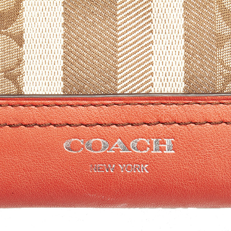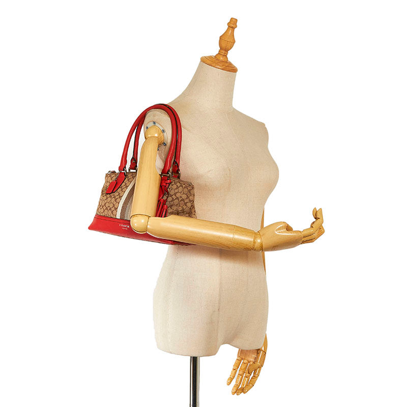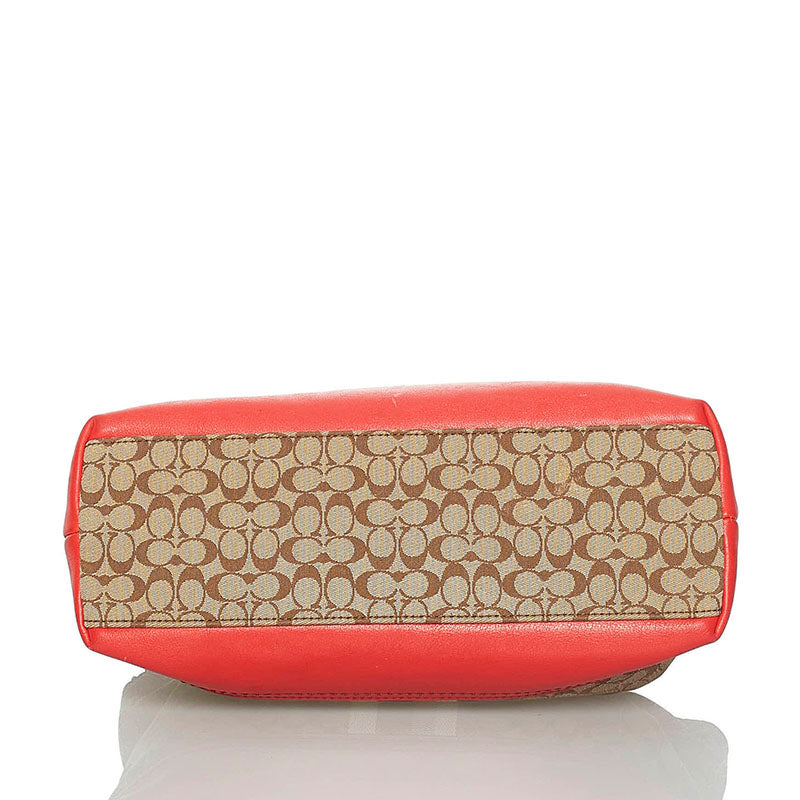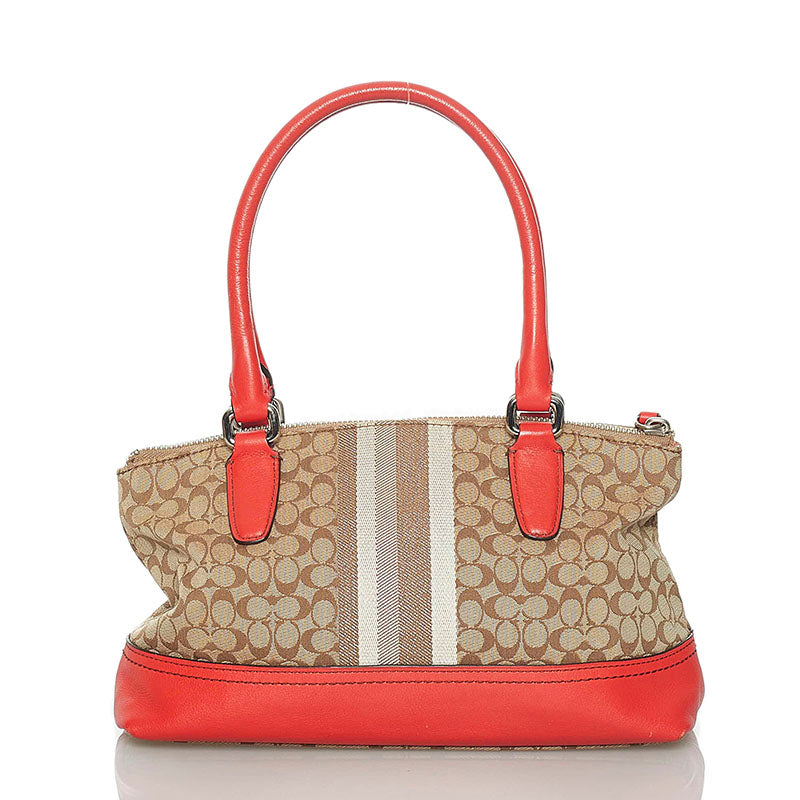 コーチ ミニシグネチャー ハンドバッグ ミニハンドバッグ オレンジ ベージュ キャンバス レザー レディース COACH 【中古】