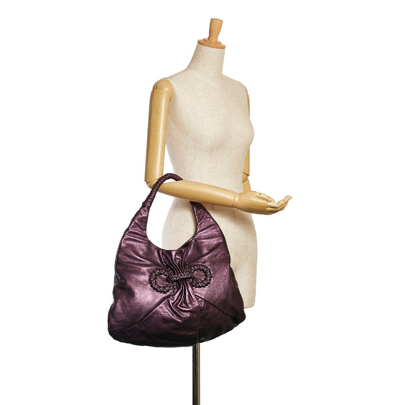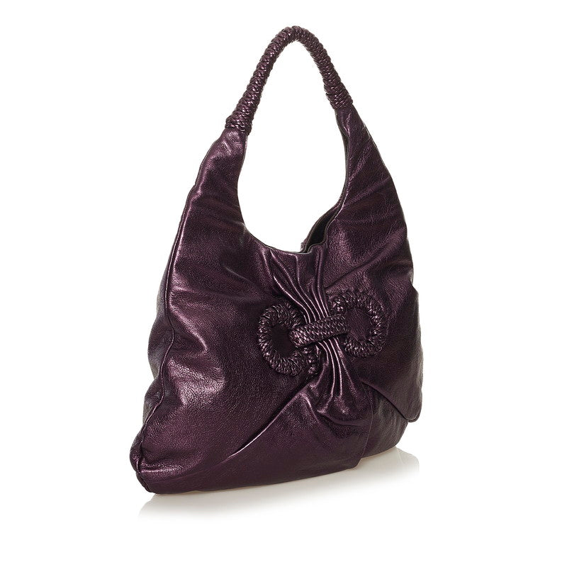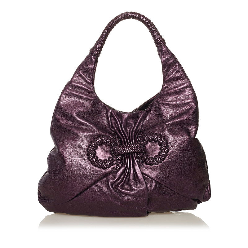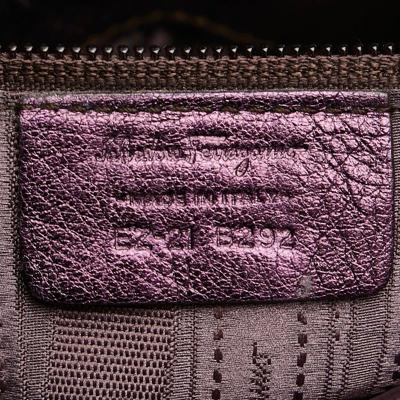 サルヴァトーレフェラガモ ガンチーニ ワンショルダー EZ-21 B292 メタリック パープル レザー レディース Salvatore Ferragamo 【中古】