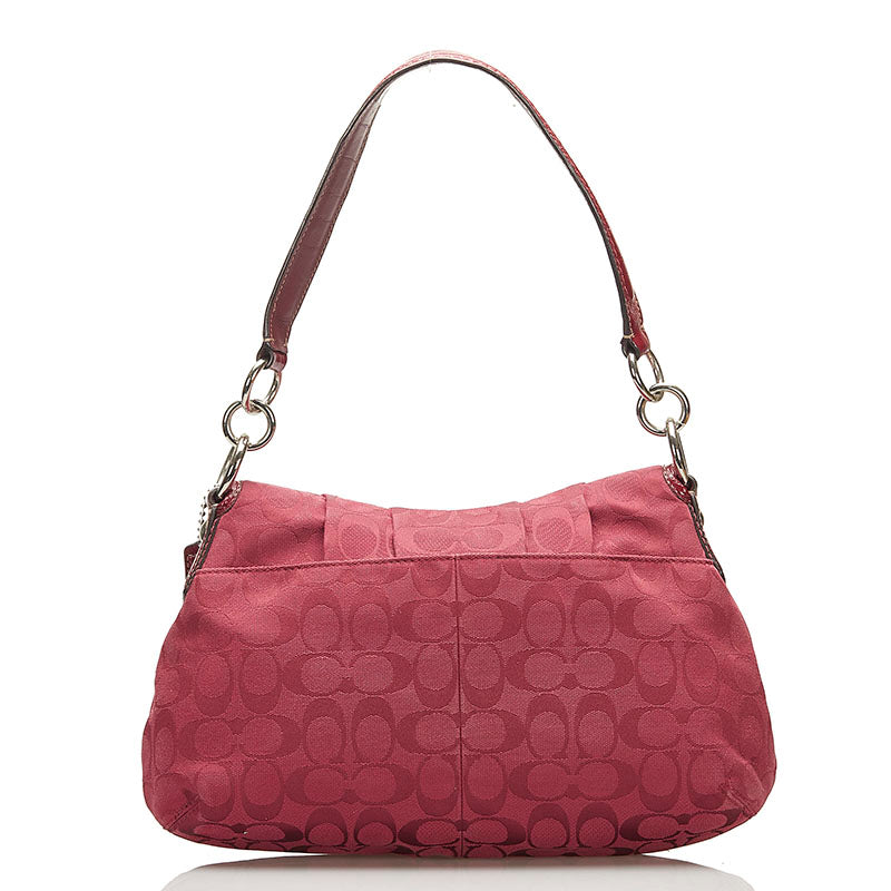コーチ シグネチャー ワンショルダー F17093 ボルドー キャンバス パテントレザー レディース COACH 【中古】