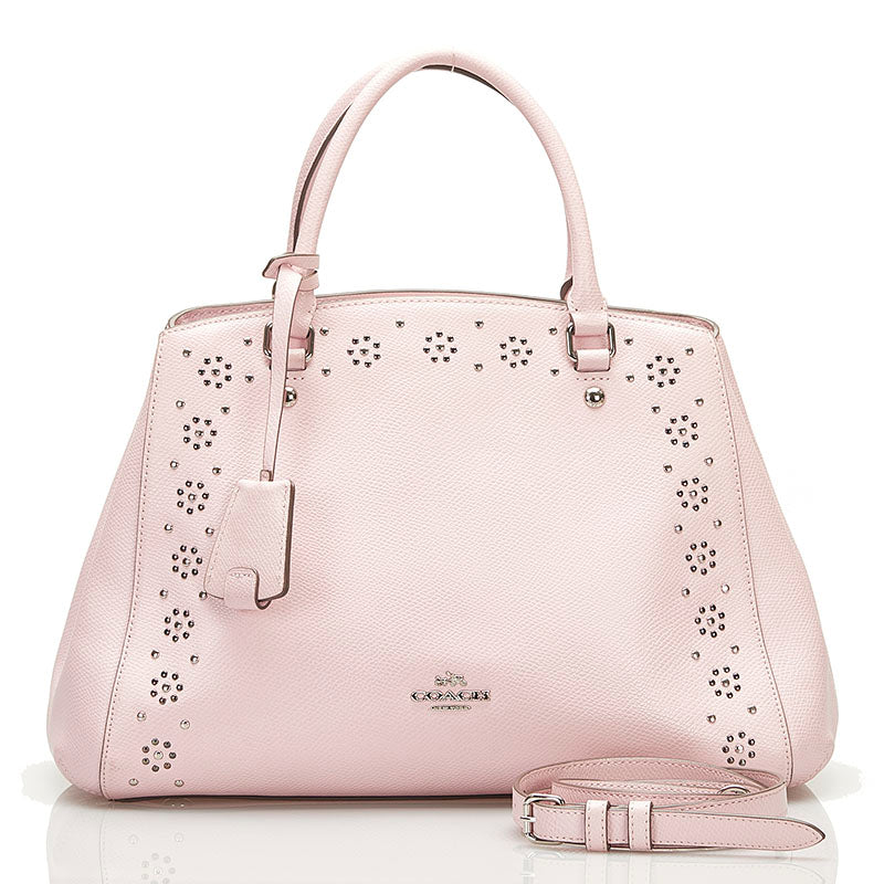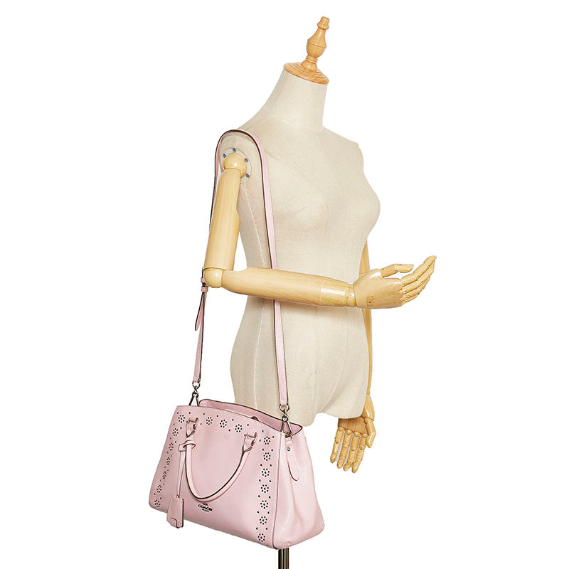 コーチ マーゴット キャリーオール ラグジュアリー スタッズド フローラル ハンドバッグ ショルダーバッグ 2WAY F36640 ピンク レザー レディース COACH 【中古】