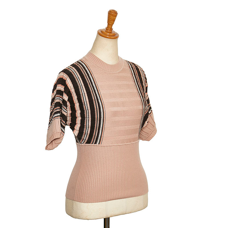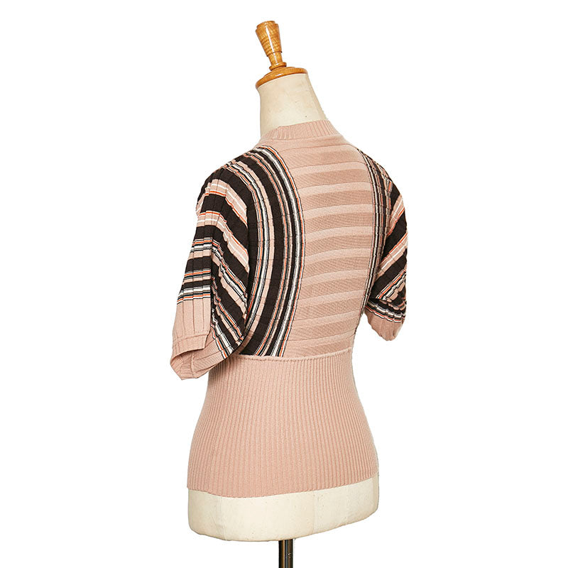 クロエ ストライプ 五分袖 ニット ピンク ウール ビスコース レディース Chloe 【中古】