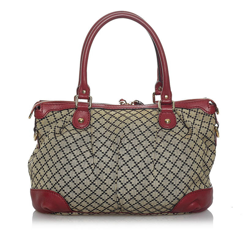 グッチ ディアマンテ ショルダーバッグ トートバッグ 2WAY 247902 ベージュ レッド キャンバス レザー レディース GUCCI 【中古】