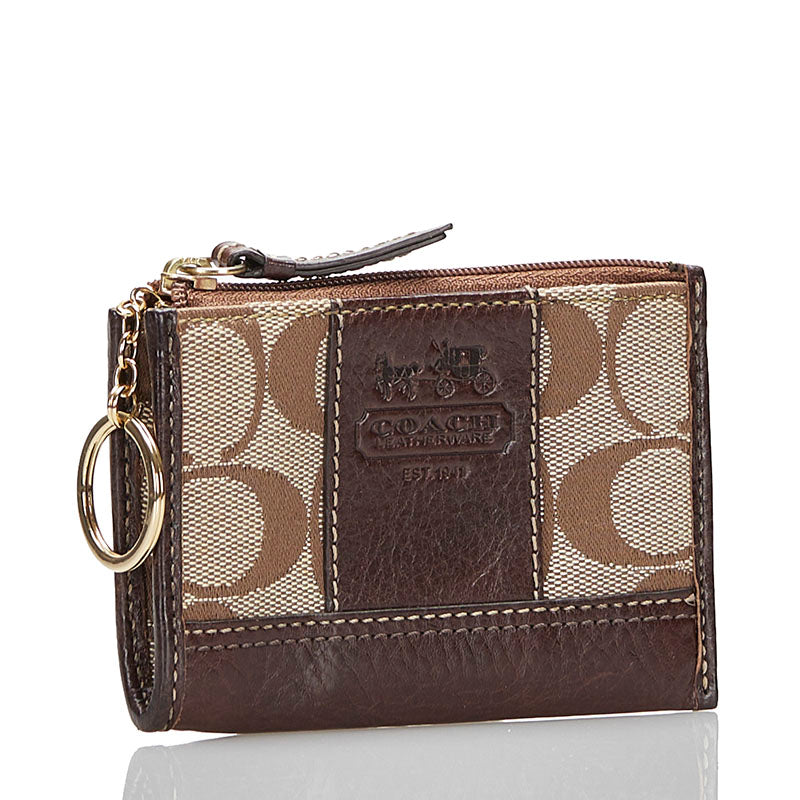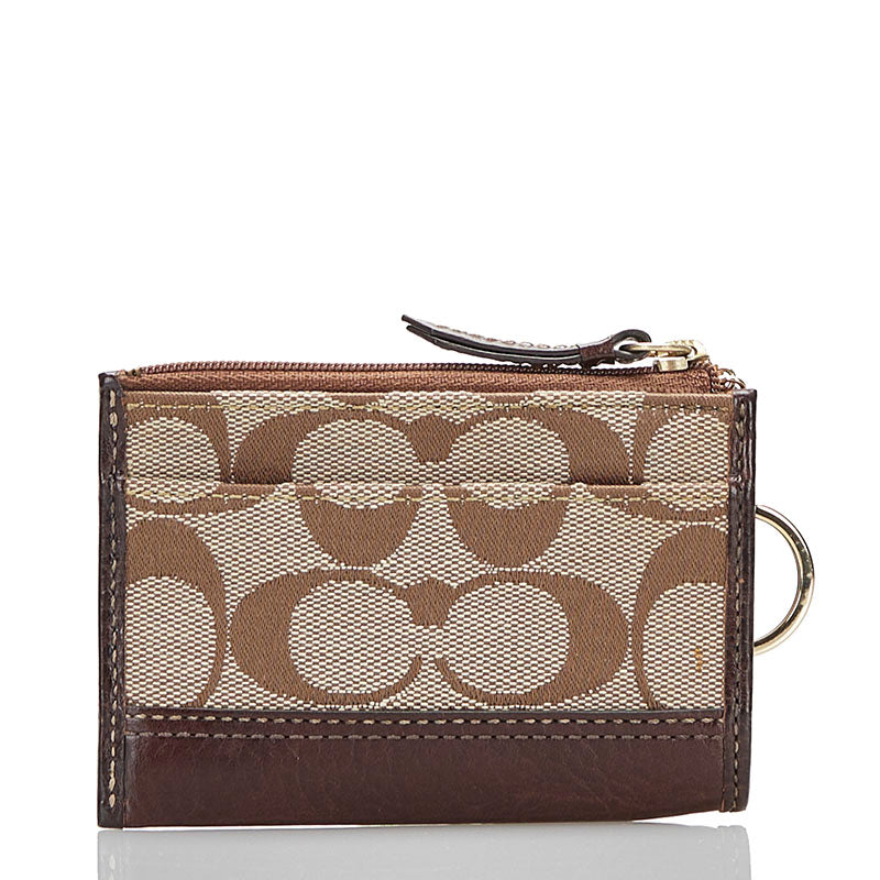 コーチ シグネチャー コインケース ブラウン ベージュ キャンバス レザー レディース COACH 【中古】