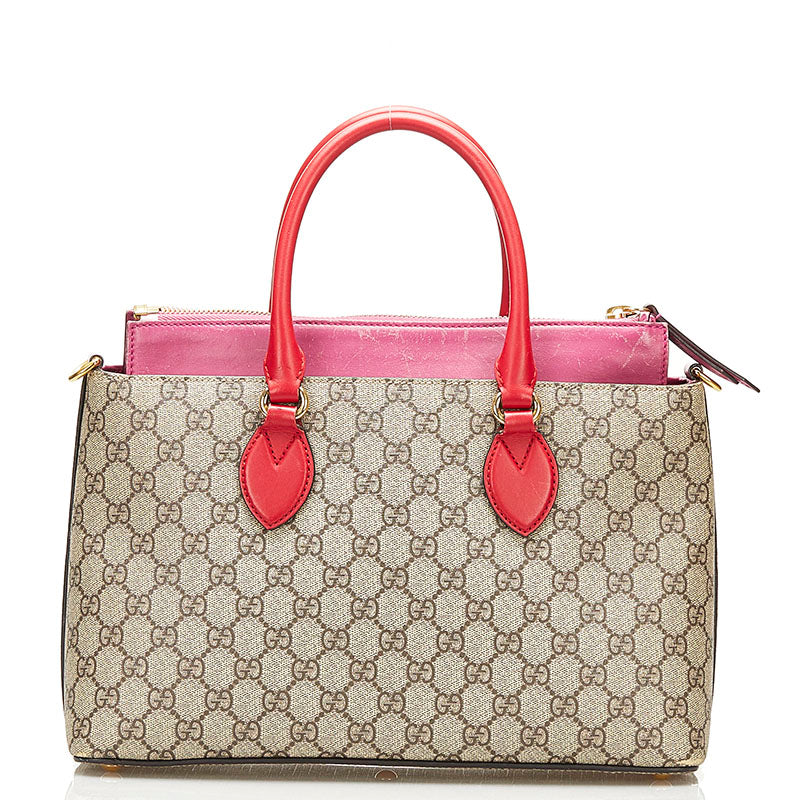 グッチ GGスプリーム スモール ハンドバッグ ショルダーバッグ 2WAY 409534 ベージュ ピンク レッド PVC レザー レディース GUCCI 【中古】
