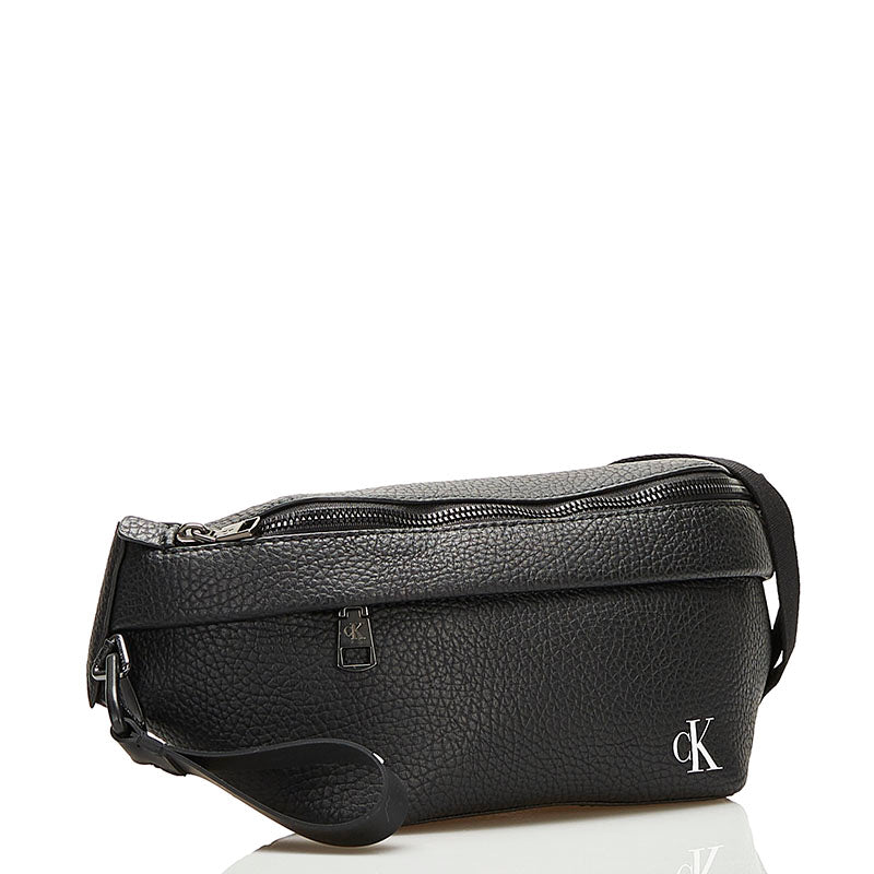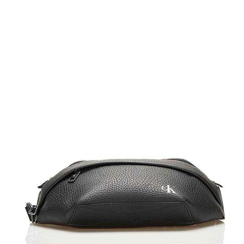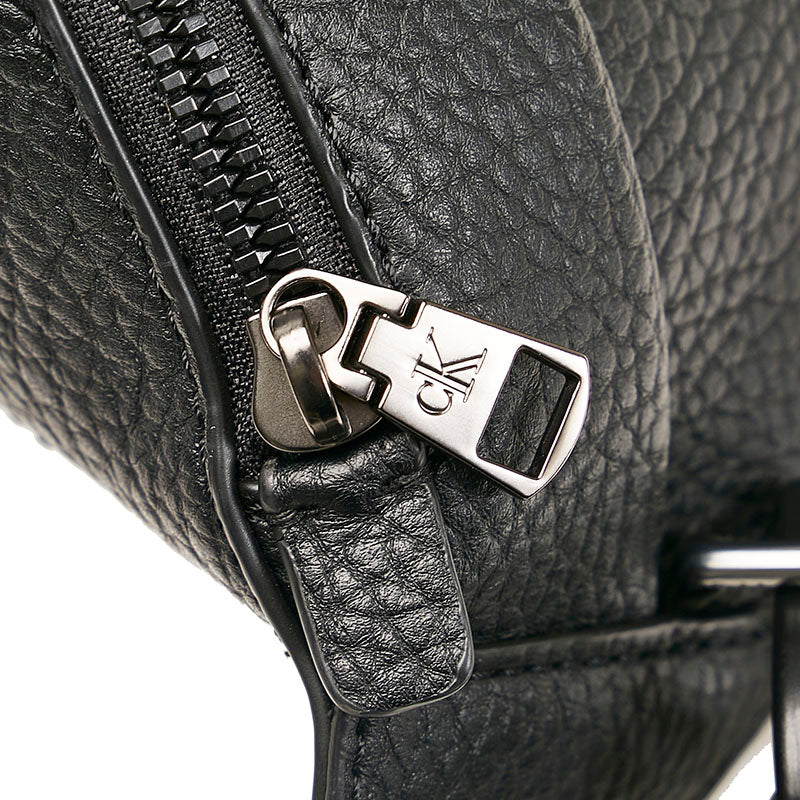 カルバンクライン ロゴ ボディバッグ ウエストバッグ ブラック レザー メンズ Calvin Klein 【中古】