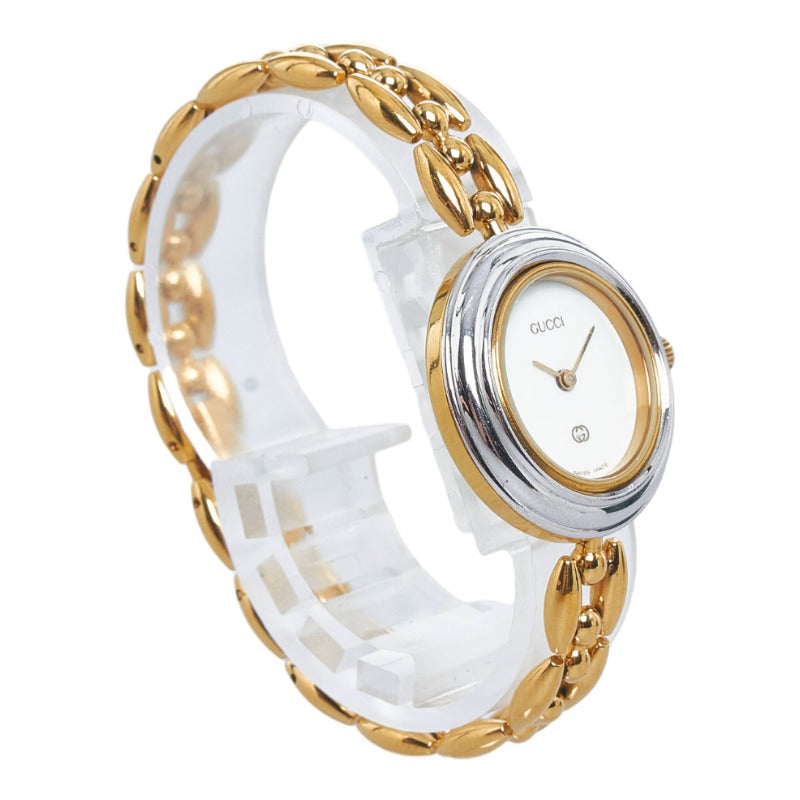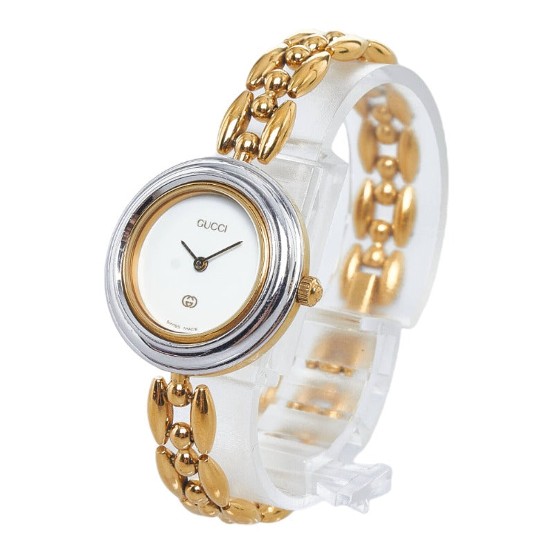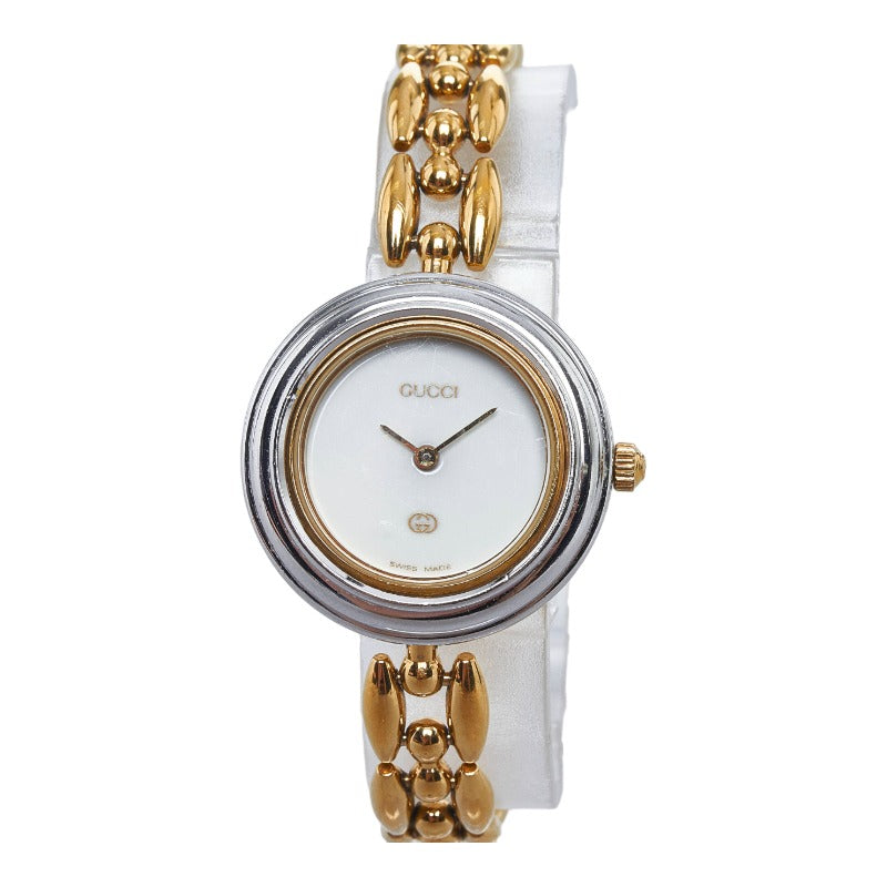 グッチ チェンジベゼル 腕時計 11 12 クオーツ ホワイト文字盤 メッキ レディース GUCCI 【中古】
