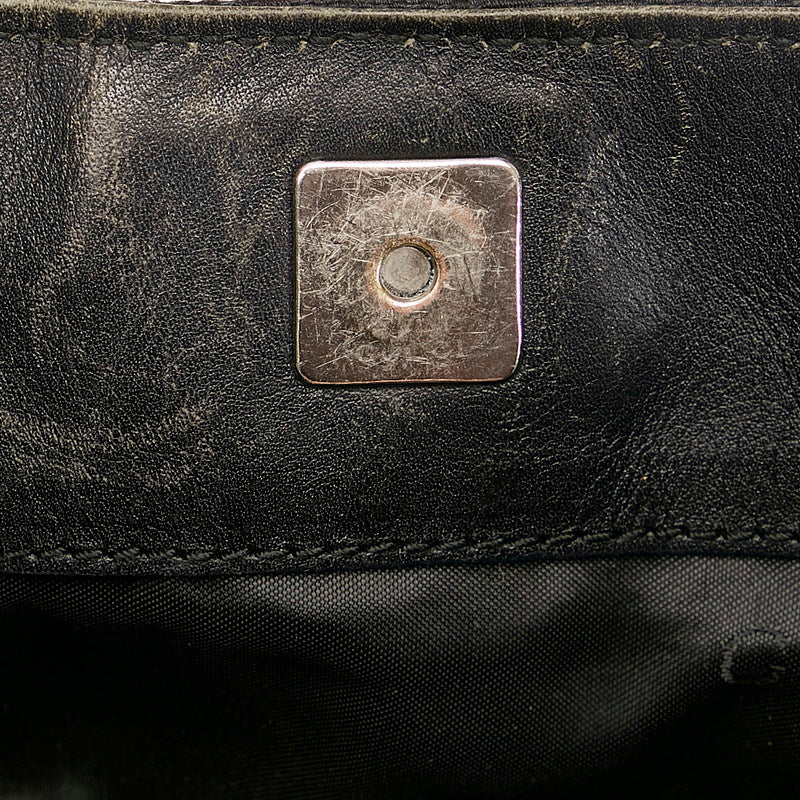外側⇒レザーにスレ・線キズ・若干の型崩れ サイド⇒スレ・線キズ 底面⇒スレ・線キズ・角スレ ショルダー⇒ストラップにヨレ・付け根レザーにスレ・線キズ・コバひび割れ 金具⇒小キズ 開閉口⇒目立つフチスレ 内側⇒レザーにスレ・線キズ・メインに薄汚れ |