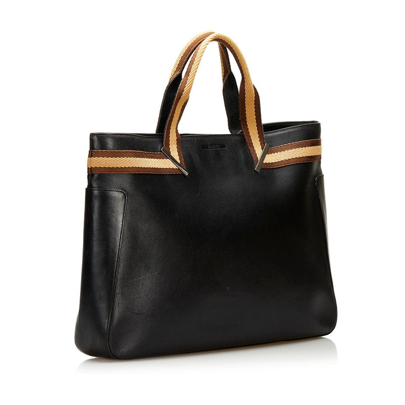 グッチ シェリーライン トートバッグ 002 1134 ブラック ベージュ レザー メンズ GUCCI 【中古】