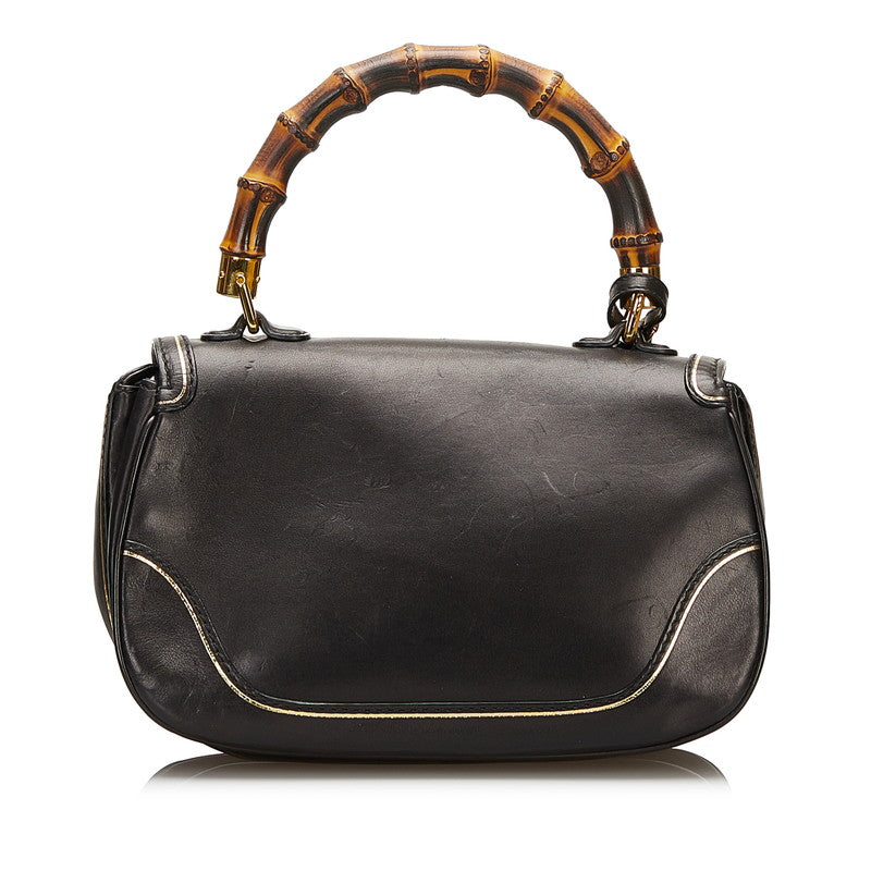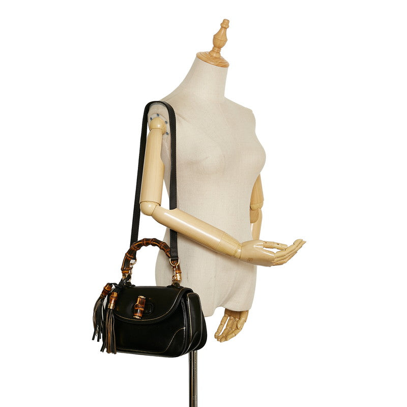 グッチ ニューバンブー フローラ ハンドバッグ ショルダーバッグ 2WAY 279492 ブラック レザー レディース GUCCI 【中古】