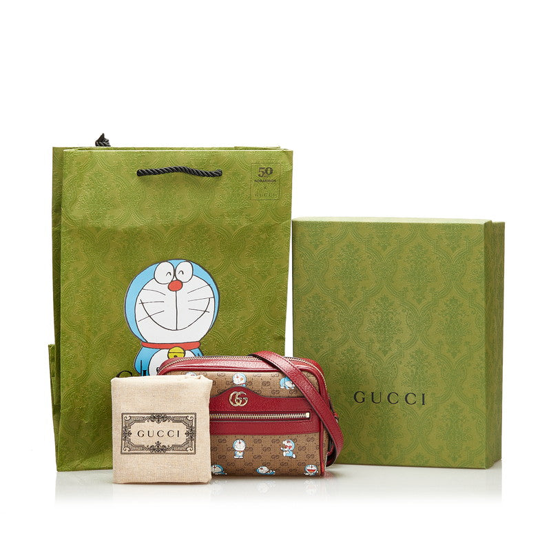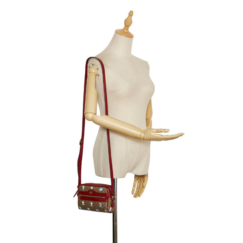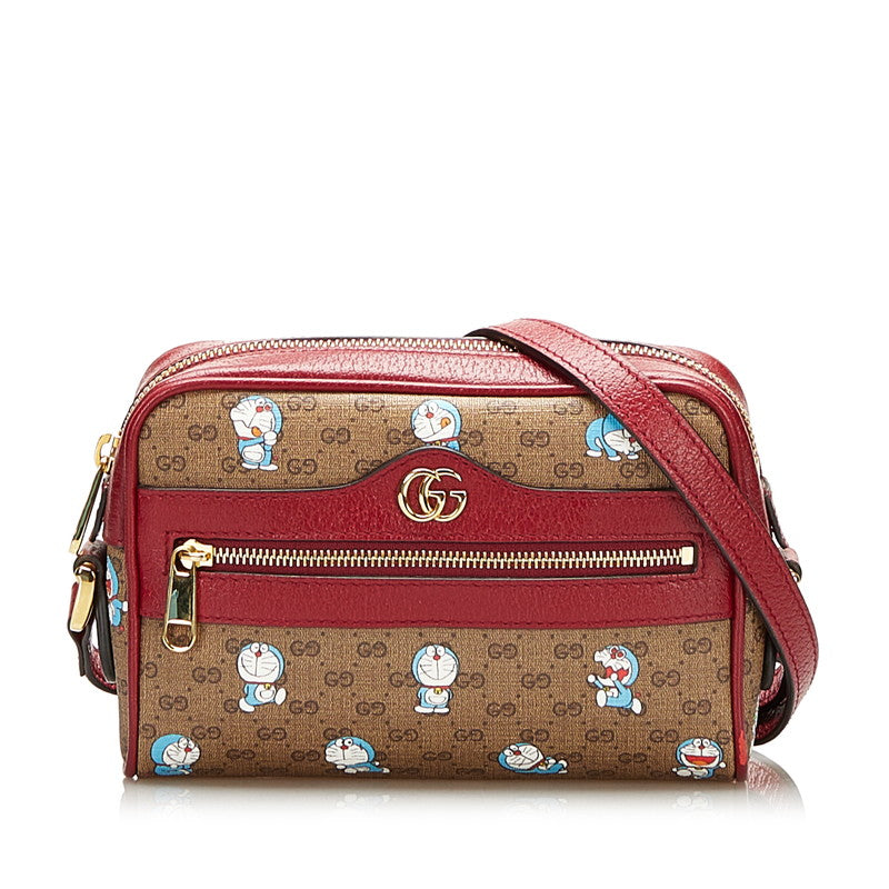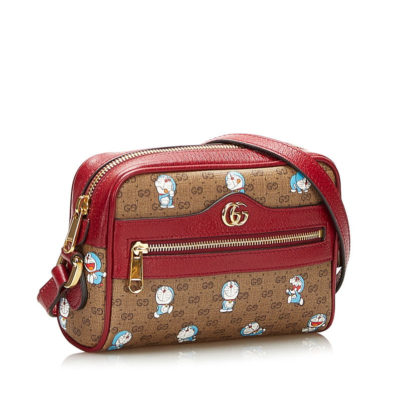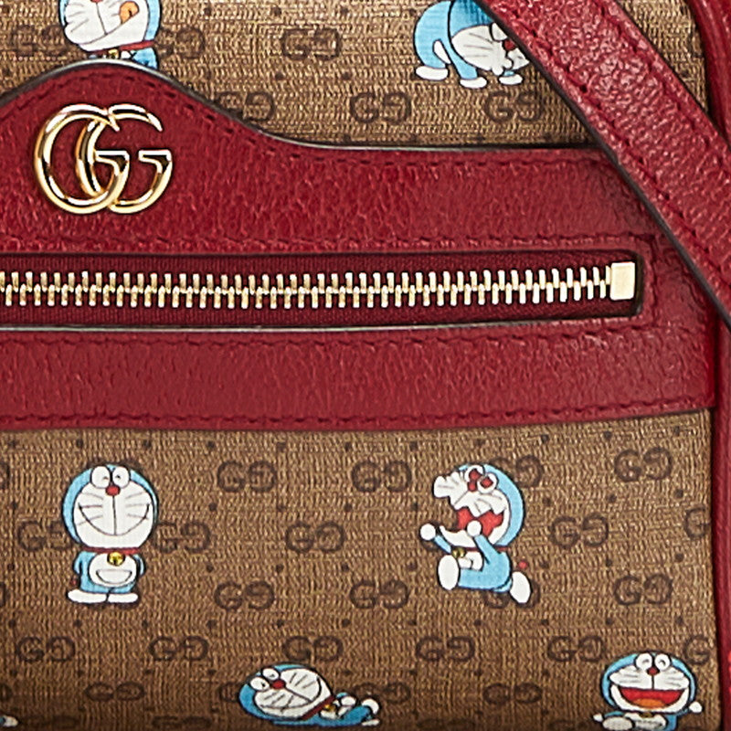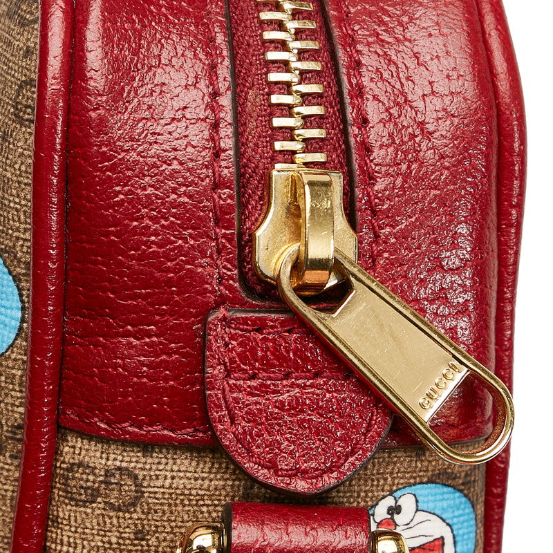 グッチ マイクロ GG スプリーム ドラえもん 斜め掛け ミニ ショルダーバッグ 647784 ブラウン ボルドー PVC レザー レディース GUCCI 【中古】