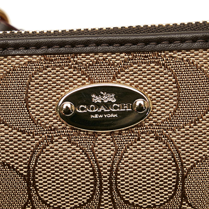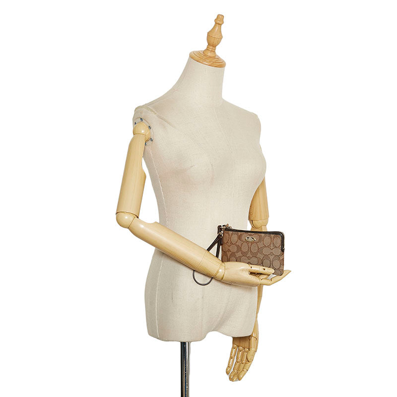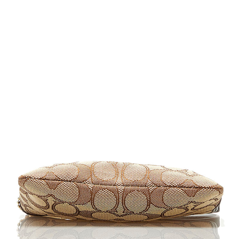 コーチ シグネチャー ポーチ F53536 ベージュ ブラウン キャンバス レザー レディース COACH 【中古】