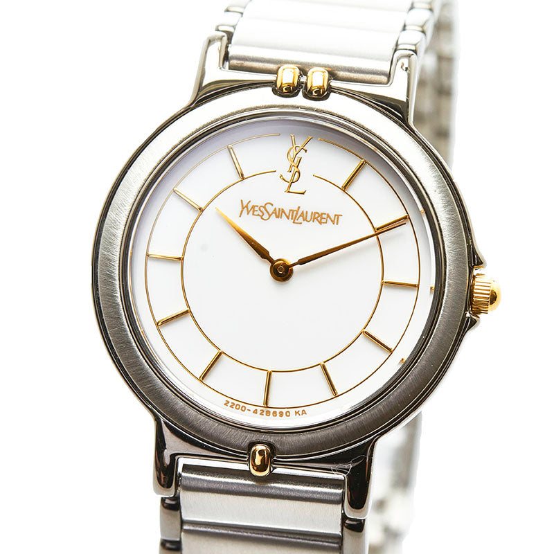 サンローラン 腕時計 2200-228499 TA クオーツ アイボリー文字盤 ステンレススチール レディース SAINT LAURENT 【中古】