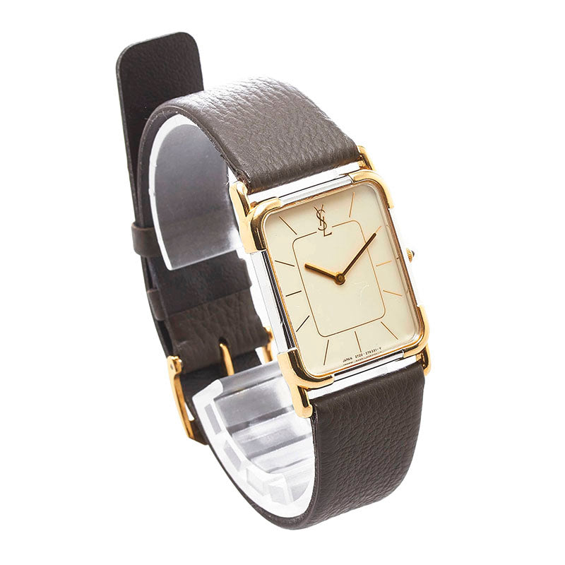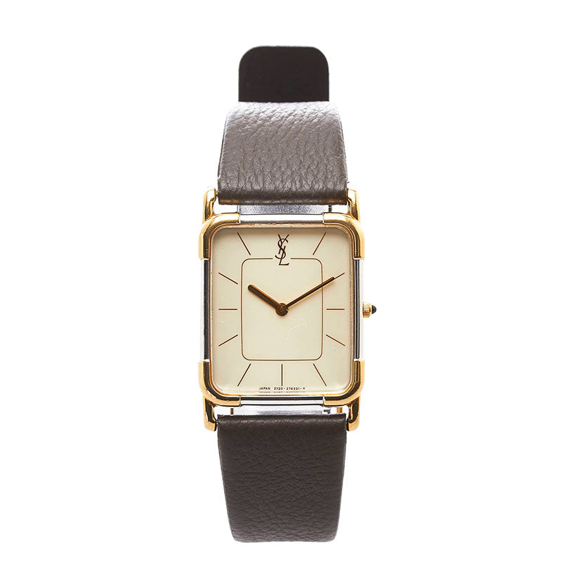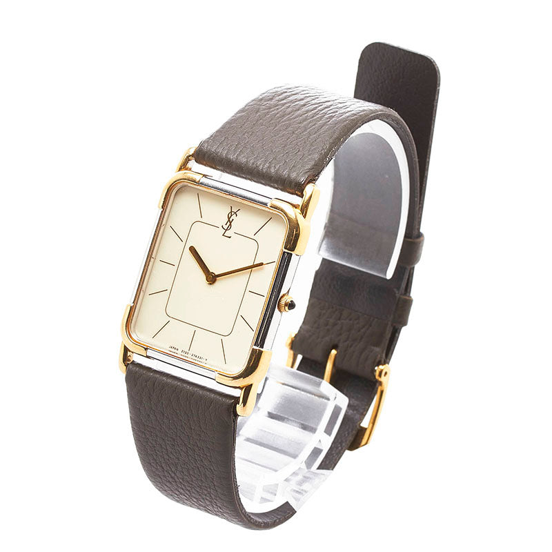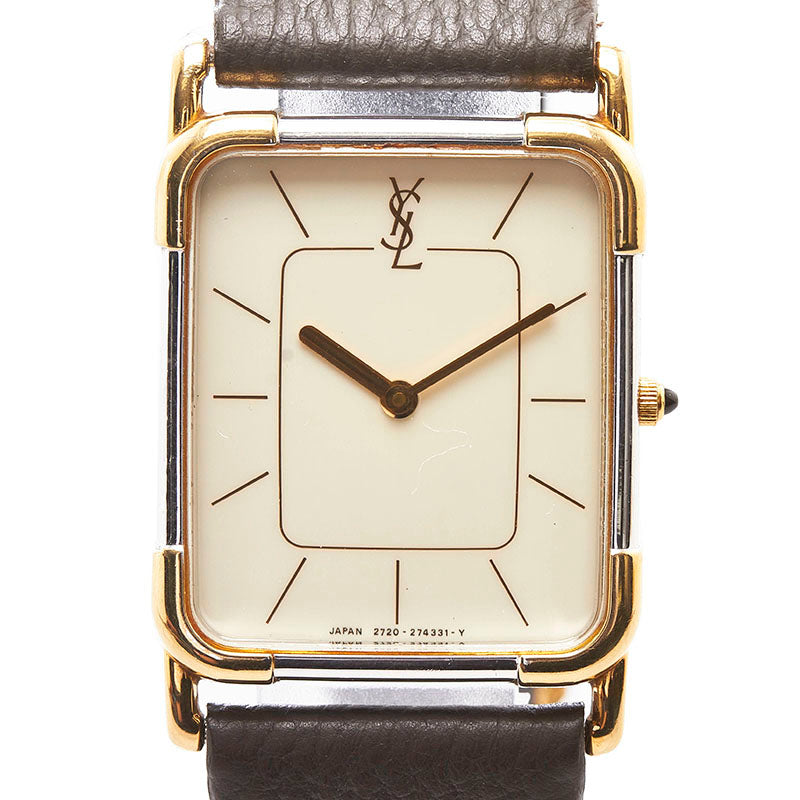 サンローラン コンビ 腕時計 クオーツ ホワイト文字盤 ステンレススチール レザー メンズ SAINT LAURENT 【中古】