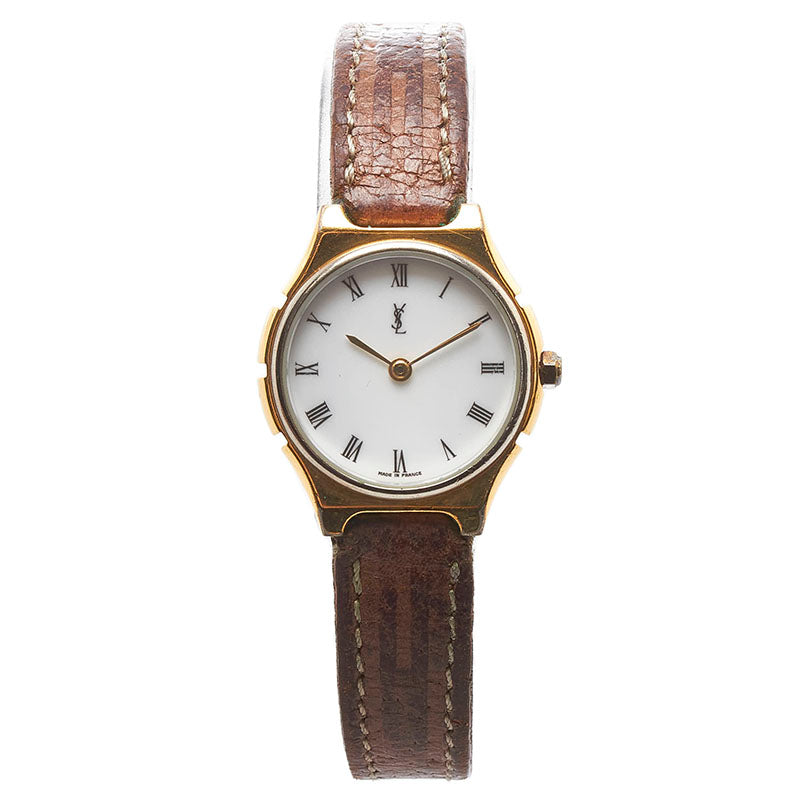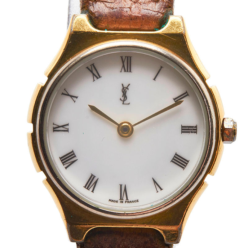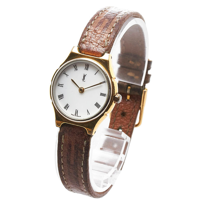 サンローラン 腕時計 クオーツ ホワイト文字盤 ステンレススチール レザー レディース SAINT LAURENT 【中古】