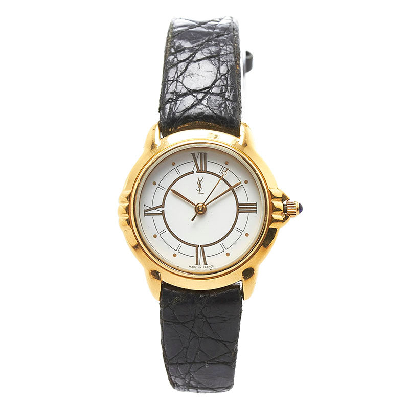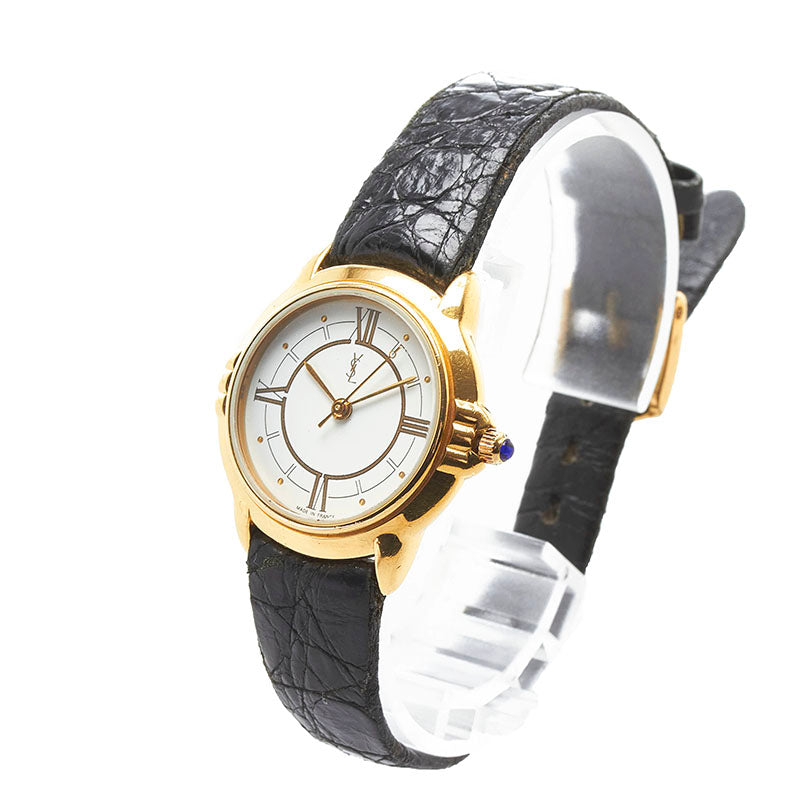 サンローラン 腕時計 クオーツ ホワイト文字盤 ステンレススチール レディース SAINT LAURENT 【中古】