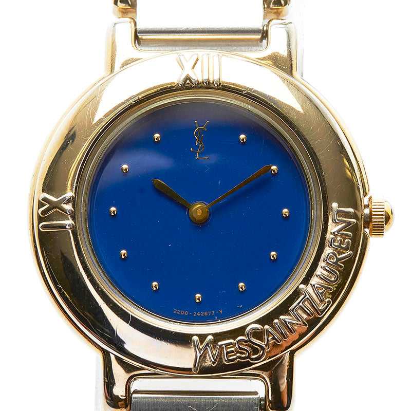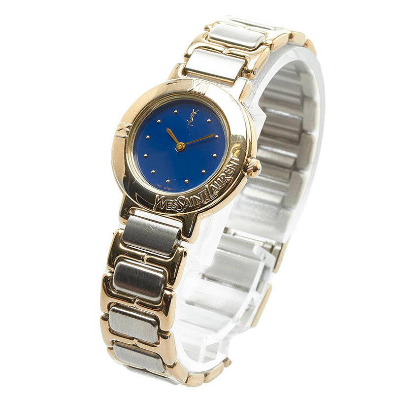 サンローラン 腕時計 2200-229789 クオーツ ブルー文字盤 ステンレススチール レディース SAINT LAURENT 【中古】