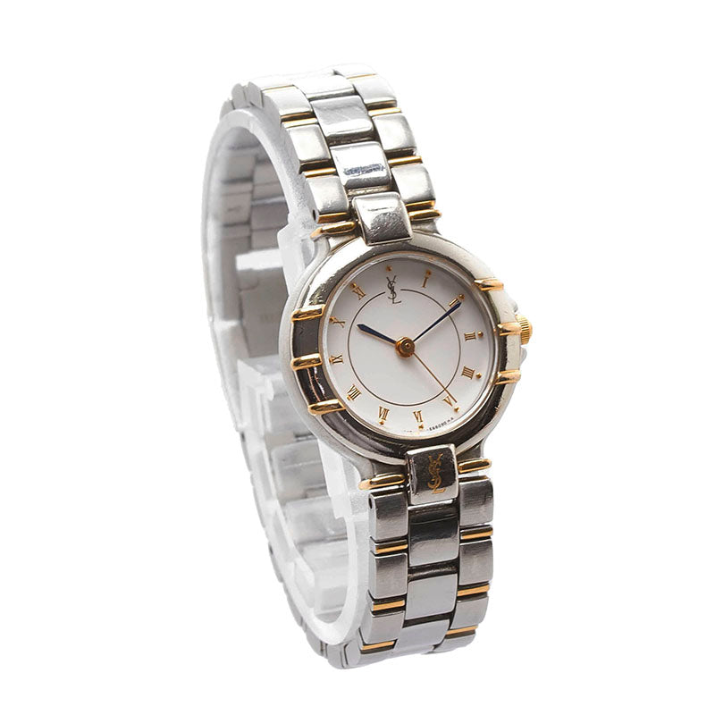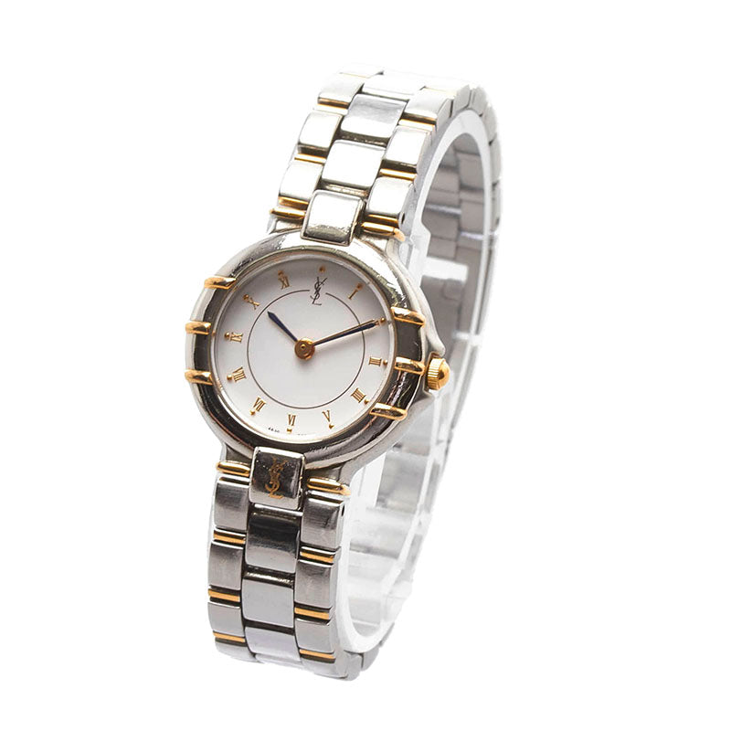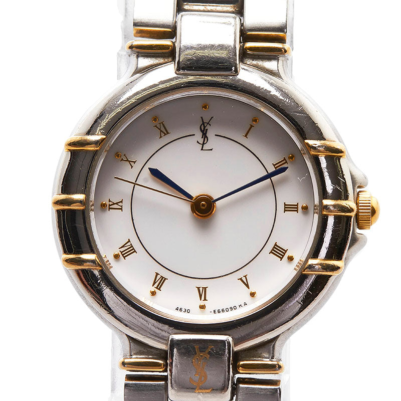 サンローラン コンビ 腕時計 4630-E63468Y クオーツ ホワイト文字盤 ステンレススチール レディース SAINT LAURENT 【中古】