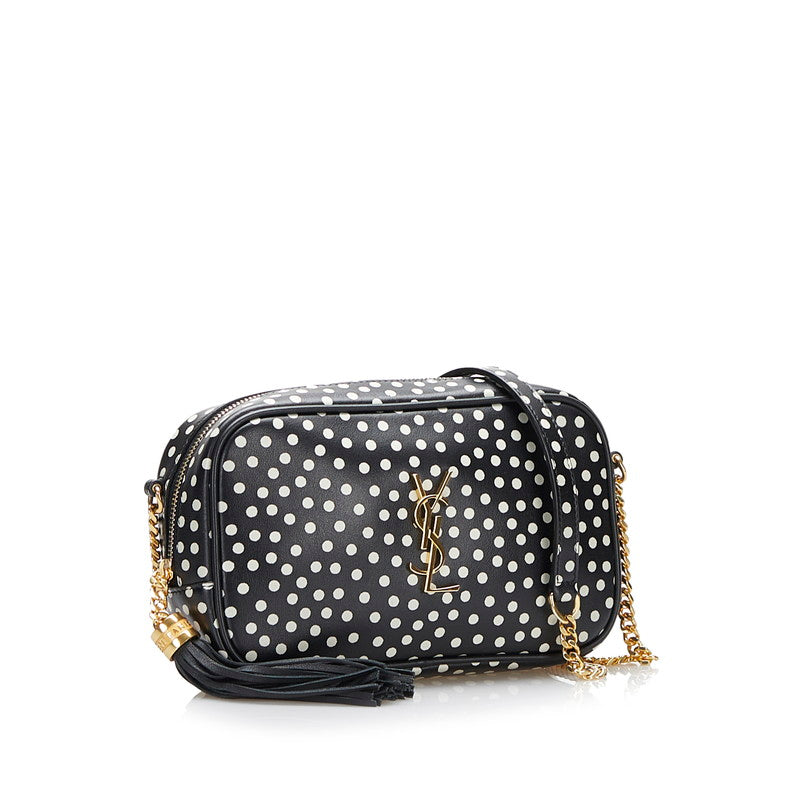 サンローラン ドット 水玉 斜め掛け チェーン ショルダーバッグ 612563 ブラック PVC レザー レディース SAINT LAURENT 【中古】