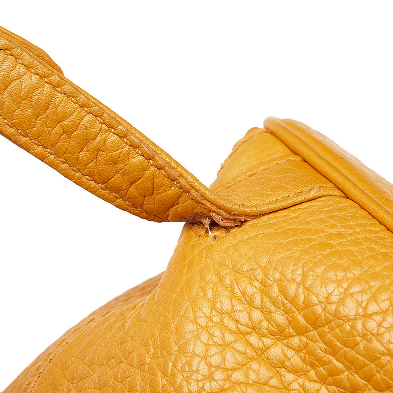 外側⇒僅かに汚れ サイド⇒スレ 底面⇒パイピングにスレ・汚れ・若干の汚れ ハンドル⇒汚れ・黒ズミ ショルダー⇒付け根に糸ほつれによるはがれ・コバスレ、若干のはがれ・若干の金具跡 金具⇒小キズ・クスミ フラップ付け根・裏⇒シワ 開閉口⇒フチに若干のスレ |