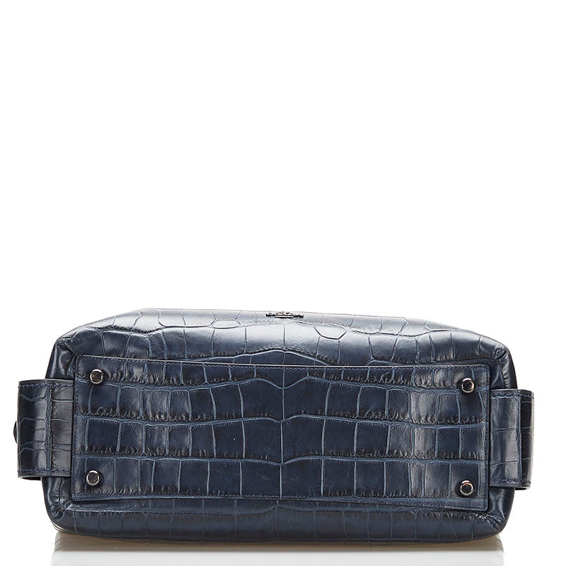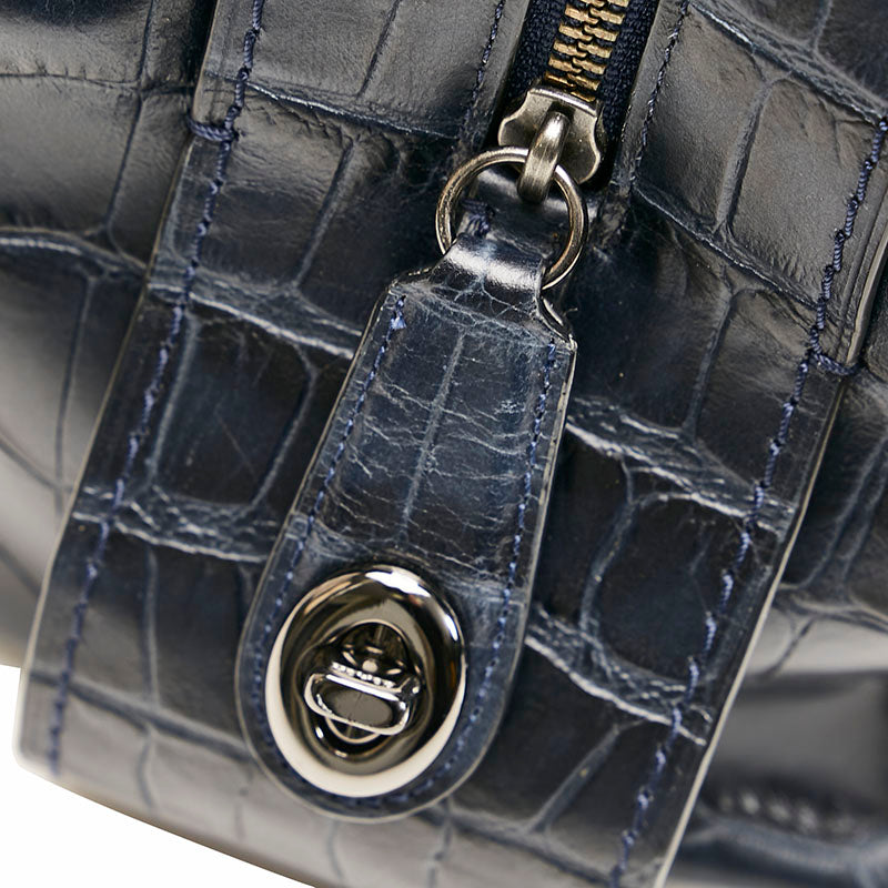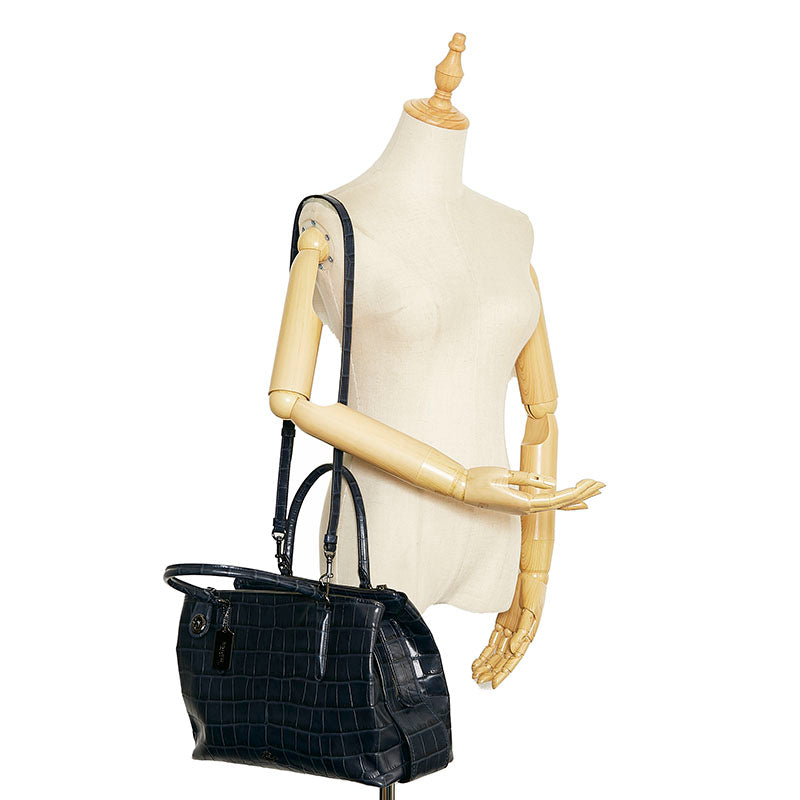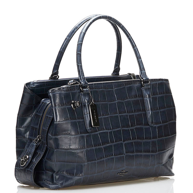 コーチ クロコ型押し ハンドバッグ ショルダーバッグ 2WAY 57116 ネイビー レザー レディース COACH 【中古】