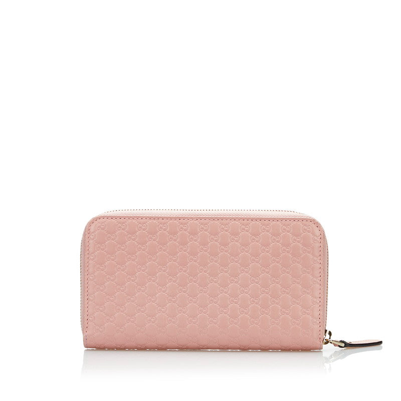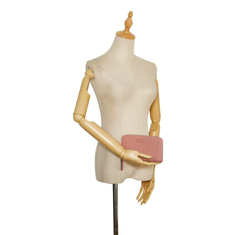 グッチ マイクログッチシマ ラウンドファスナー 長財布 449391 ピンク レザー レディース GUCCI 【中古】