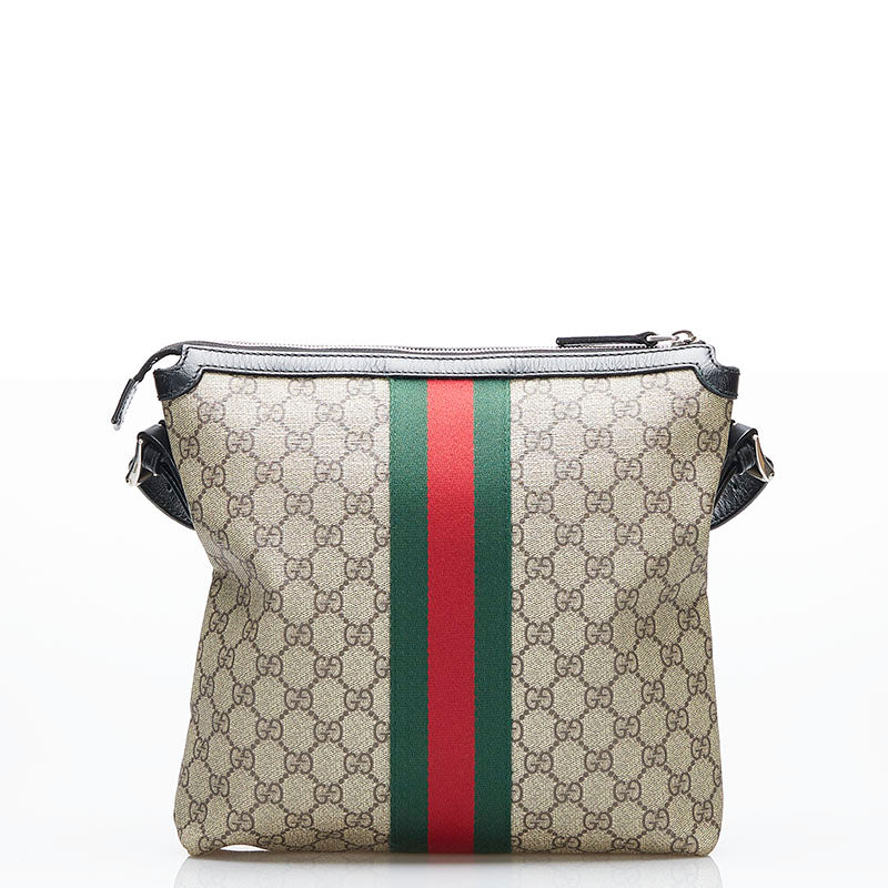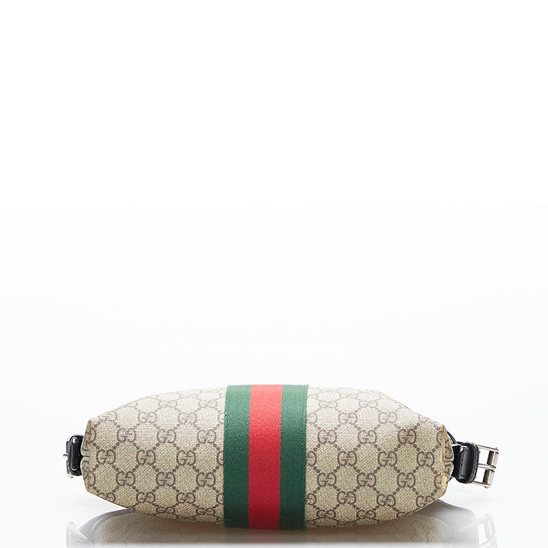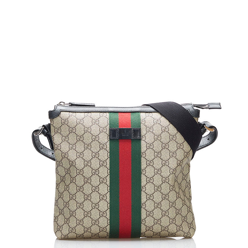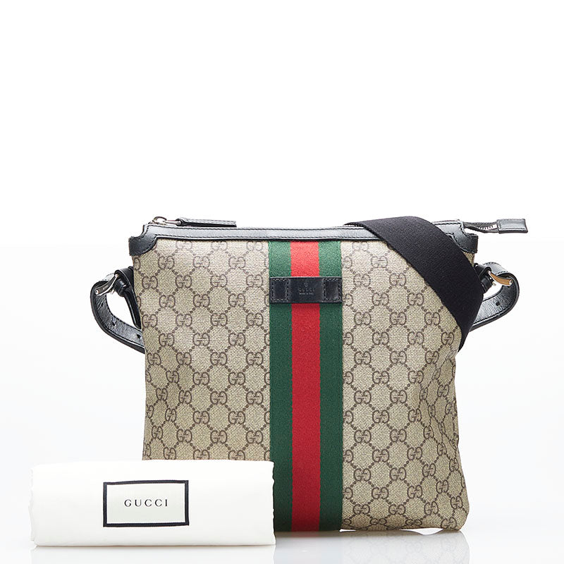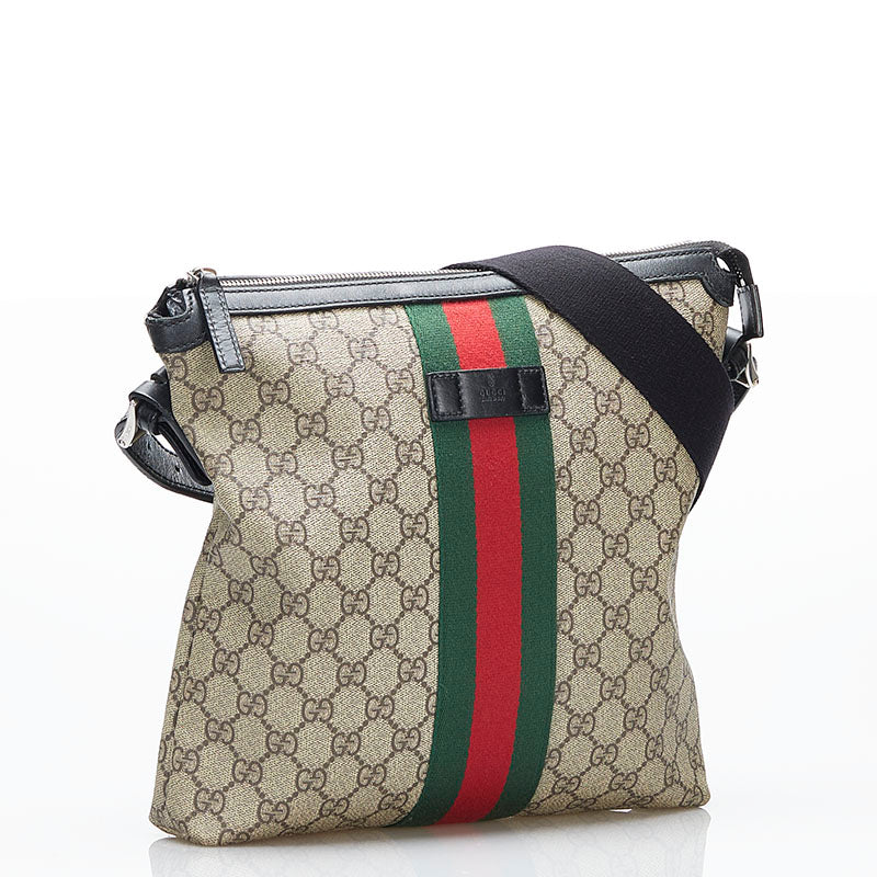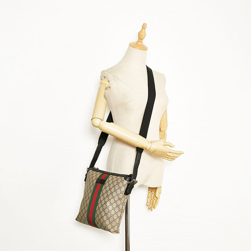 グッチ GGスプリーム シェリーライン 斜め掛け ショルダーバッグ 387111 ベージュ グリーン レッド キャンバス レザー レディース GUCCI 【中古】