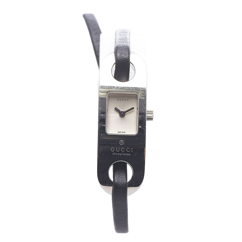 グッチ ブレスウォッチ 腕時計 6100L クオーツ シルバー文字盤 ステンレススチール レザー レディース GUCCI 【中古】