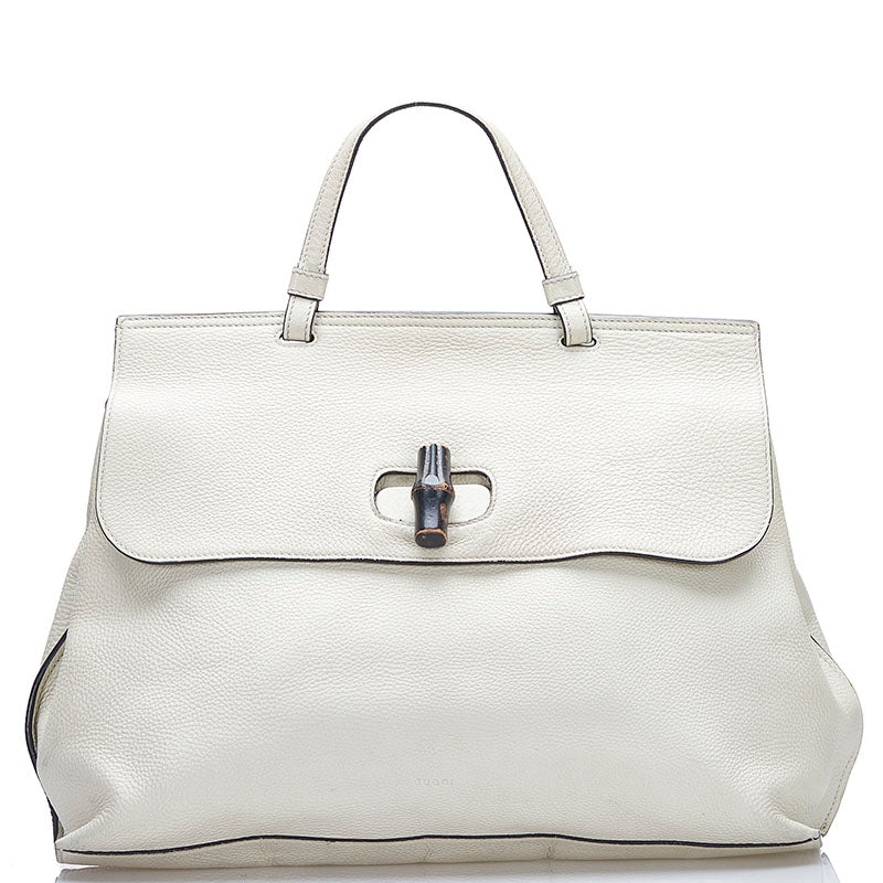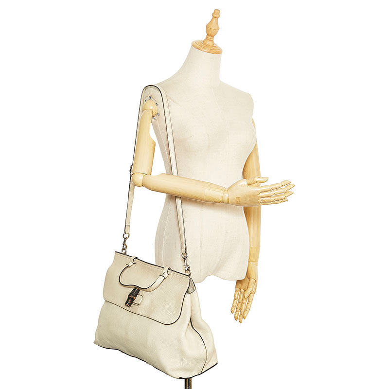 グッチ バンブー ハンドバッグ ショルダーバッグ 2WAY 370830 アイボリー ホワイト レザー レディース GUCCI 【中古】
