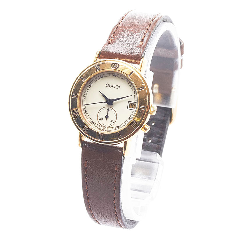 グッチ ベルト(社外品) 腕時計 800L クオーツ ホワイト文字盤 ステンレススチール レザー レディース GUCCI 【中古】