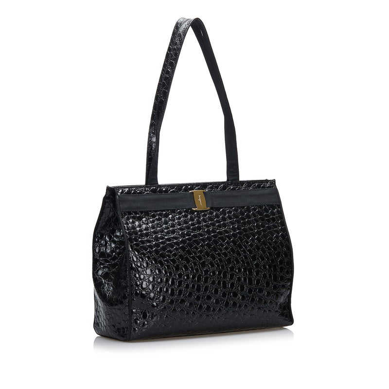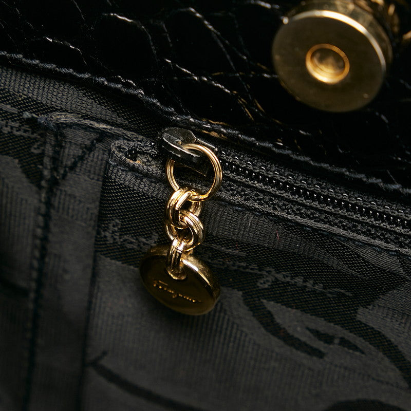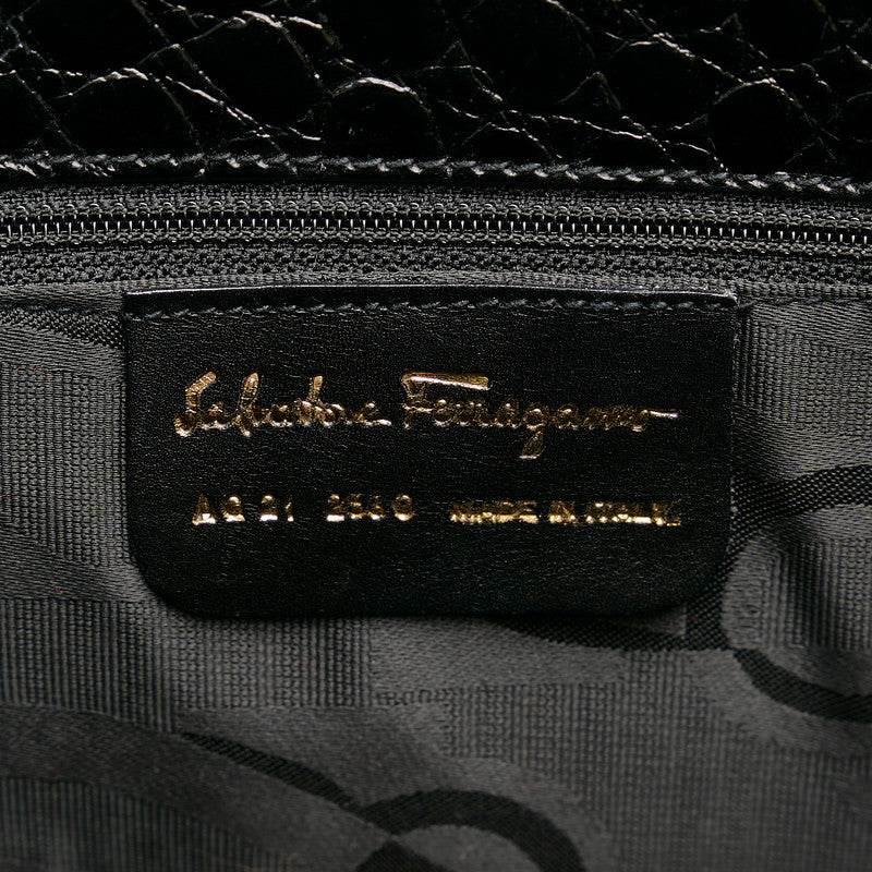 サルヴァトーレフェラガモ ヴァラ 型押し トートバッグ AO 21 2530 ブラック レザー レディース Salvatore Ferragamo 【中古】