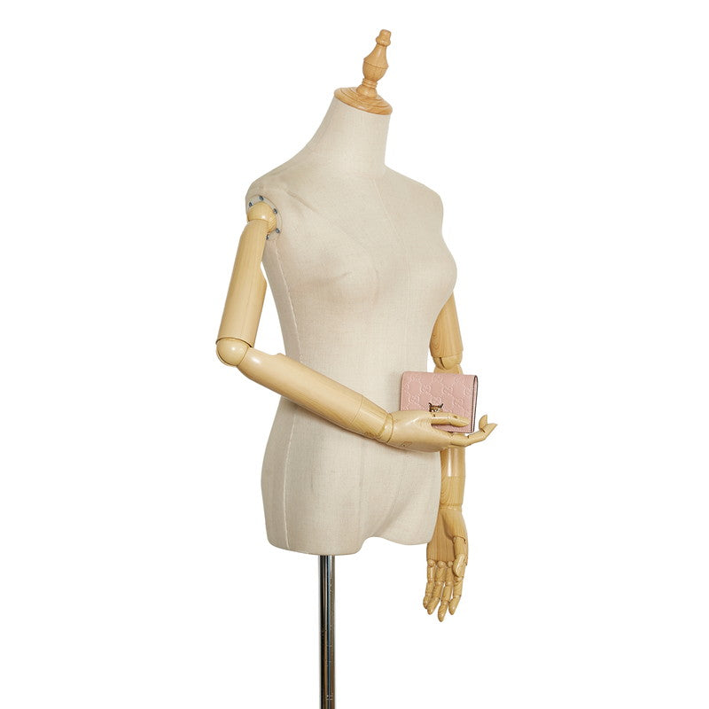 グッチ グッチシマ キャット 猫 二つ折り財布 548057 ピンク レザー レディース GUCCI 【中古】