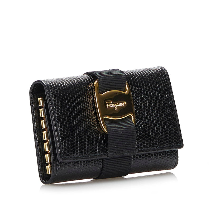 サルヴァトーレフェラガモ ヴァラリボン 6連 キーケース ブラック レザー レディース Salvatore Ferragamo 【中古】