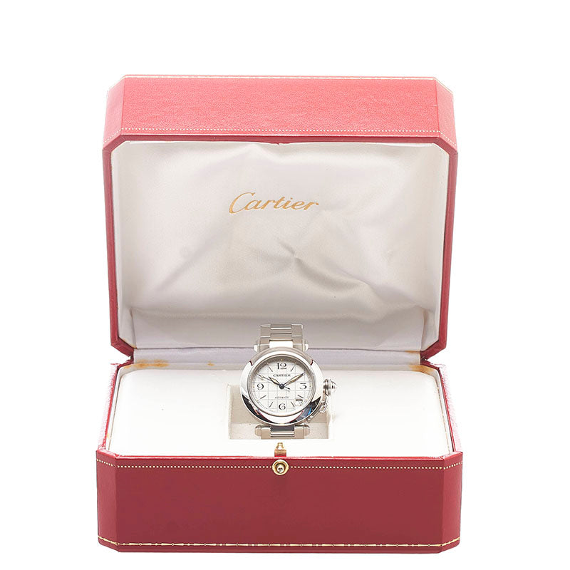 カルティエ パシャC デイト ボーイズ 腕時計 W31023M7 自動巻き ホワイト文字盤 ステンレススチール メンズ CARTIER 【中古】