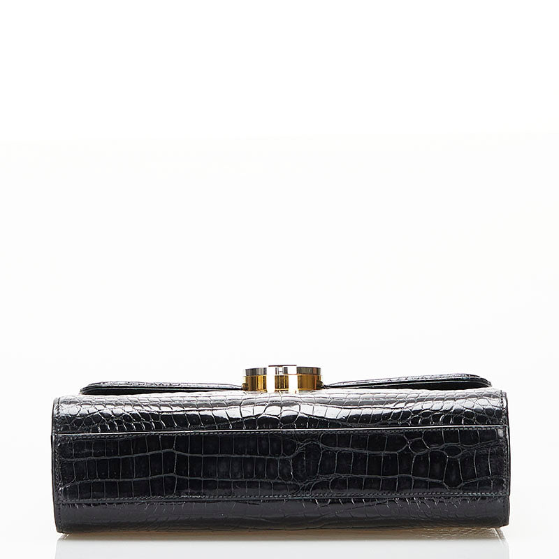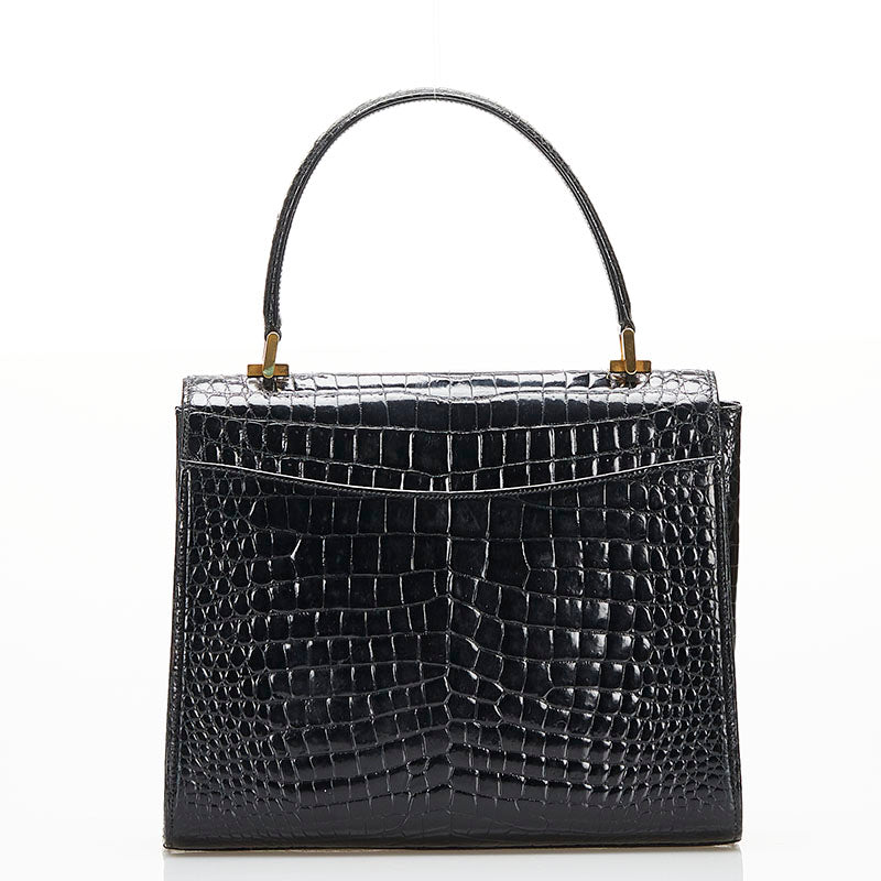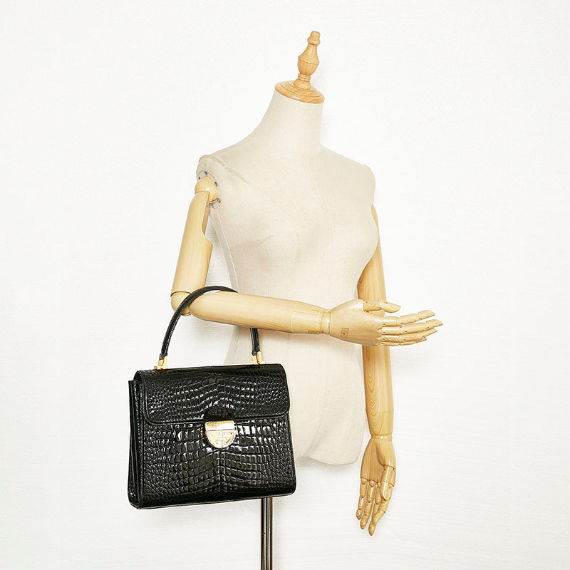 グッチ クロコ型押し ハンドバッグ ブラック レザー レディース GUCCI 【中古】