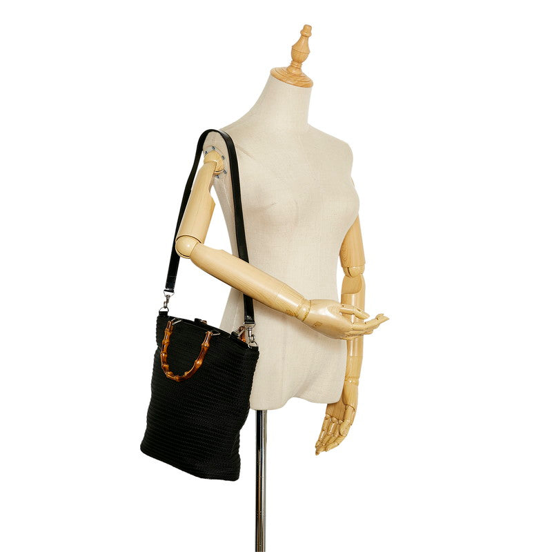 グッチ バンブー ハンドバッグ ショルダーバッグ 2WAY 002 1998 ブラック キャンバス レディース GUCCI 【中古】