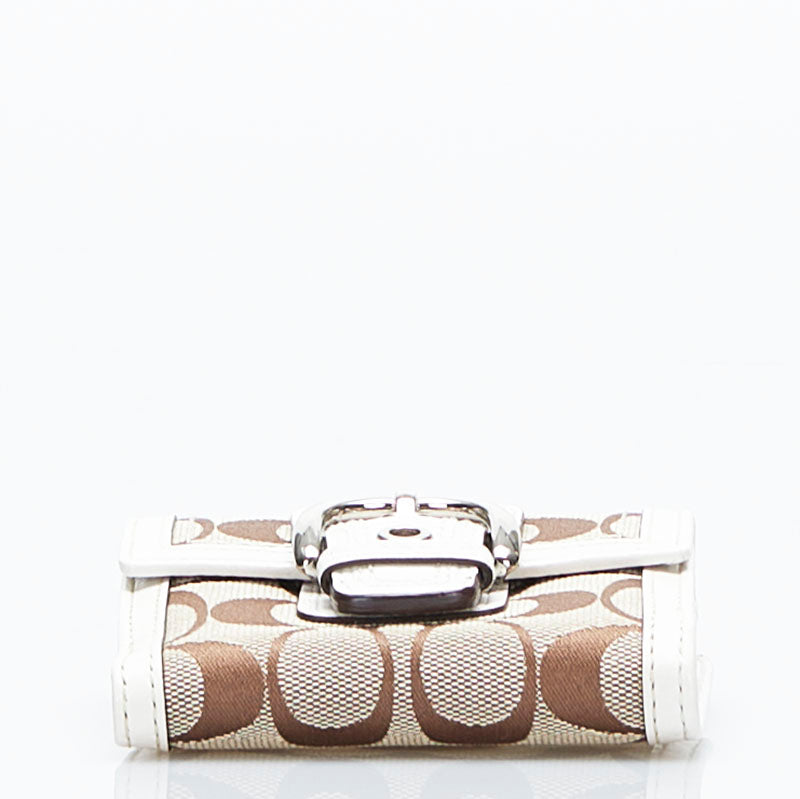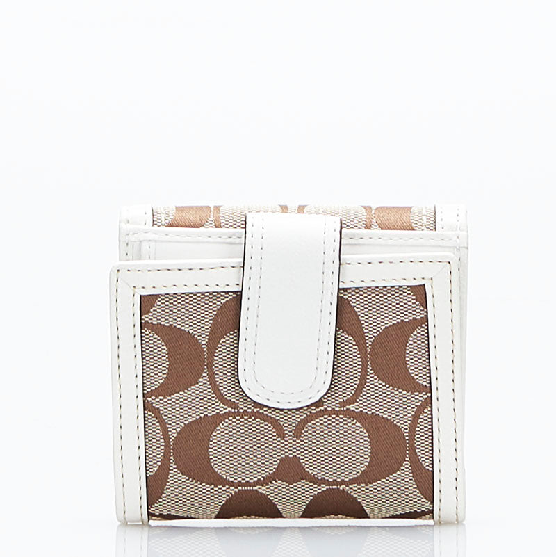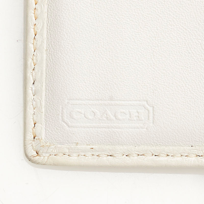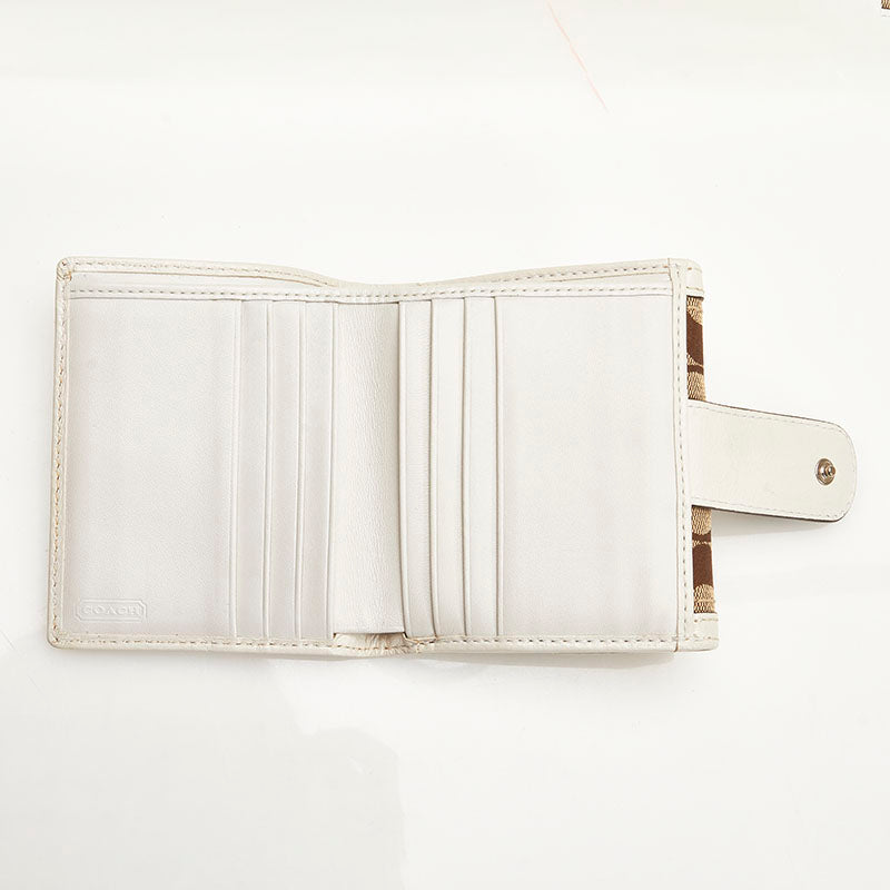 コーチ シグネチャー 二つ折り財布 ベージュ ホワイト キャンバス レザー レディース COACH 【中古】