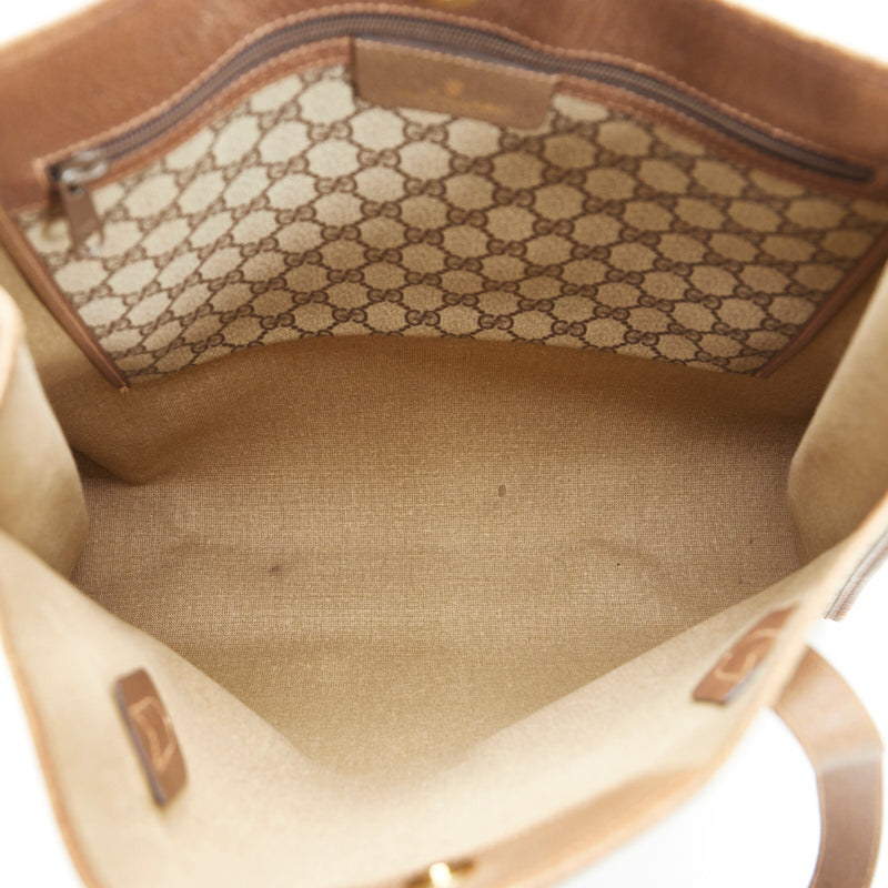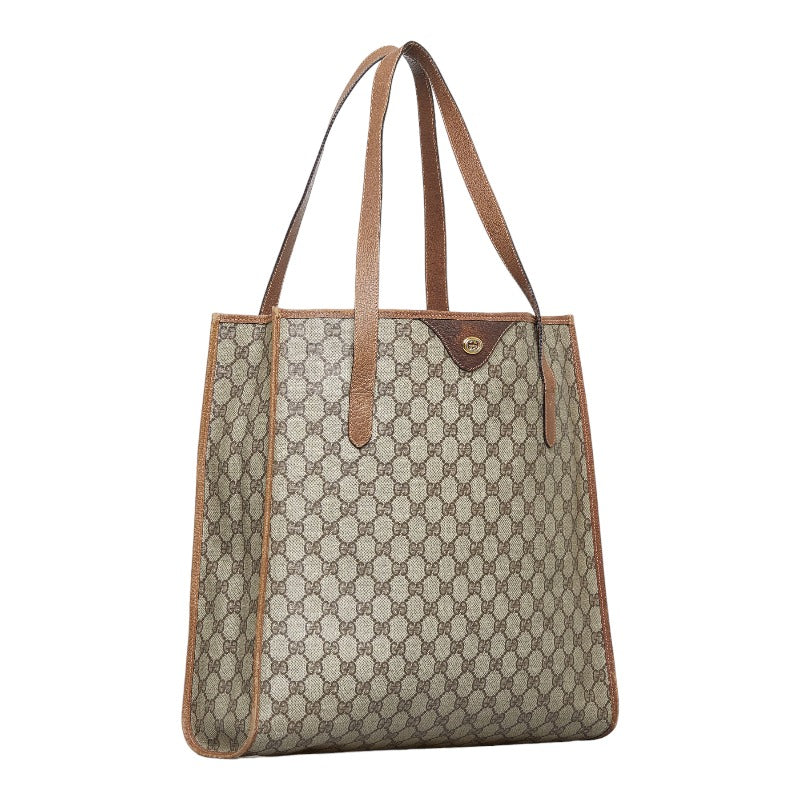グッチ オールドグッチ ハンドバッグ トートバッグ 92.02.998 ベージュ ブラウン PVC レザー レディース GUCCI 【中古】
