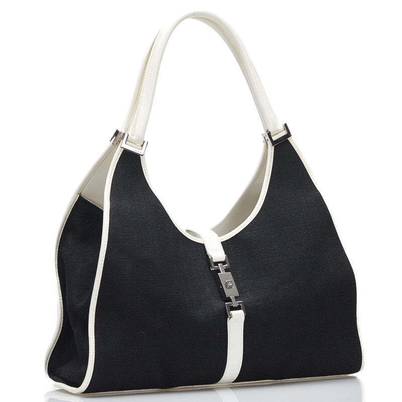 グッチ ジャッキー ハンドバッグ ショルダーバッグ 002-1066 ブラック ホワイト キャンバス レザー レディース GUCCI 【中古】