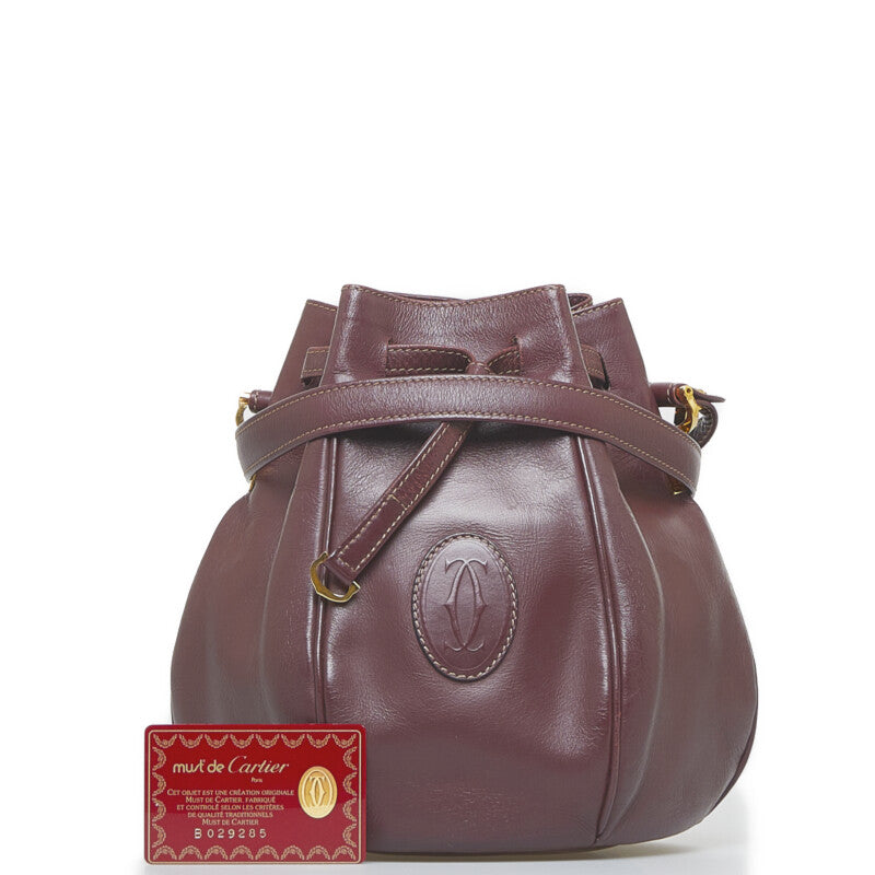 カルティエ マスト 斜め掛け ショルダーバッグ ボルドー レッド レザー レディース CARTIER 【中古】