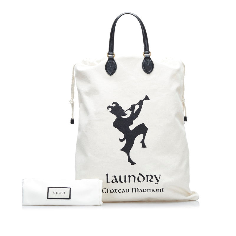 グッチ シャトーマーモント ドローストリングス ハンドバッグ トートバッグ 552403 ホワイト キャンバス レザー レディース GUCCI 【中古】